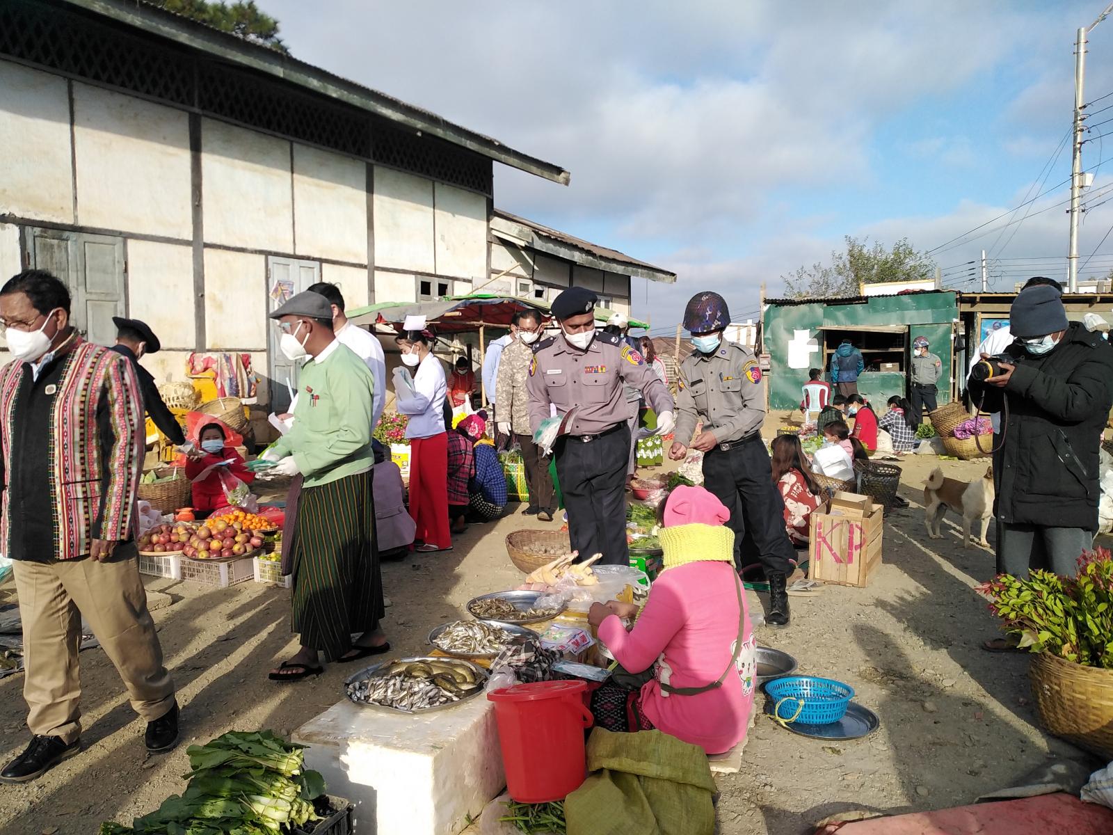 မင်းတပ်မြို့ခရိုင်အဆင့်၊ မြို့နယ်အဆင့်ဌာနဆိုင်ရာဝန်ထမ်းများနှင့် ပြည်သူ့လွှတ်တော် ကိုယ်စားလှယ်များ၊ အမျိုးသားလွှတ်တော်ကိုယ်စားလှယ်များက ကိုဗစ်-၁၉ ရောဂါဖြစ်ပွားနေစဉ် ကာလအတွင်း ဒေသခံပြည်သူများ အပြင်ထွက်ပါက နှာခေါင်းစည်းများတပ်ဆင်ကြရန်နှင့် ကိုဗစ်-၁၉ ရောဂါအသိပညာပေး လက်ကမ်း စာစောင်များကို သိရှိကြရန်ရည်ရွယ်၍ အခမဲ့ဖြန့်ဝေ ရခြင်းဖြစ်ကြောင်း နှာခေါင်းစည်းများနှင့် ကိုဗစ်-၁၉ ရောဂါဆိုင်ရာလက်ကမ်းစာစောင်များကို လမ်းသွားလမ်းလာများနှင့် စျေးဝယ်လာပြည်သူများ၊ စျေးအတွင်း ရောင်းချနေသည့် စျေးသယ်များကို အခမဲ့ဖြန့်ဝေပေးခဲ့ပြီး အသိပညာ များပေးလျက်ရှိကြောင်း သိရသည်။