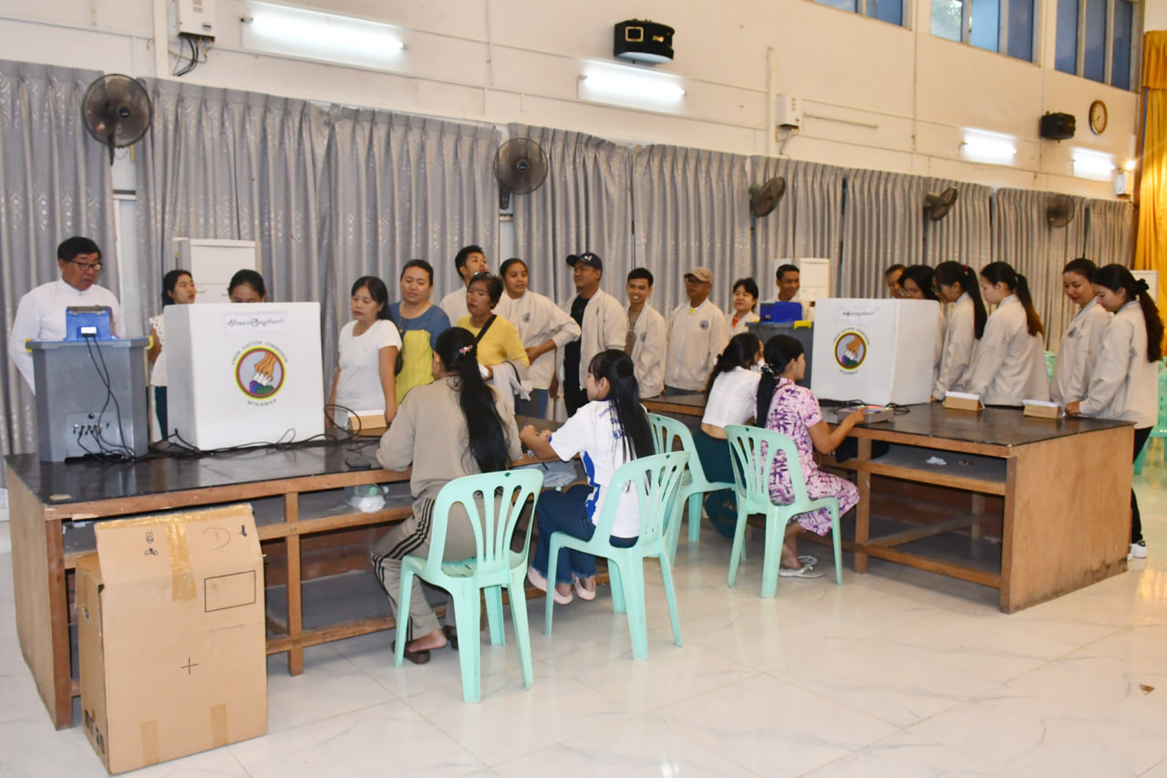 တနင်္သာရီတိုင်းဒေသကြီး၊ ကော့သောင်းခရိုင်၊ ကော့သောင်းမြို့တွင် ၂၀၂၅ ခုနှစ်၊ ပါတီစုံဒီမိုကရေစီ အထွေထွေရွေးကောက်ပွဲတွင် ဆန္ဒမဲပေးမည့် ဌာနဆိုင်ရာဝန်ထမ်းများအား မြန်မာအီလက်ထရောနစ်မဲပေးစက် (MEVM) သရုပ်ပြရှင်းလင်းခြင်းနှင့် စမ်းသပ်မဲပေးခြင်းကို ယနေ့နံနက်ပိုင်းက ကော့သောင်းမြို့ မဉ္ဇူသကခန်းမတွင် ဆောင်ရွက်ခဲ့သည်။