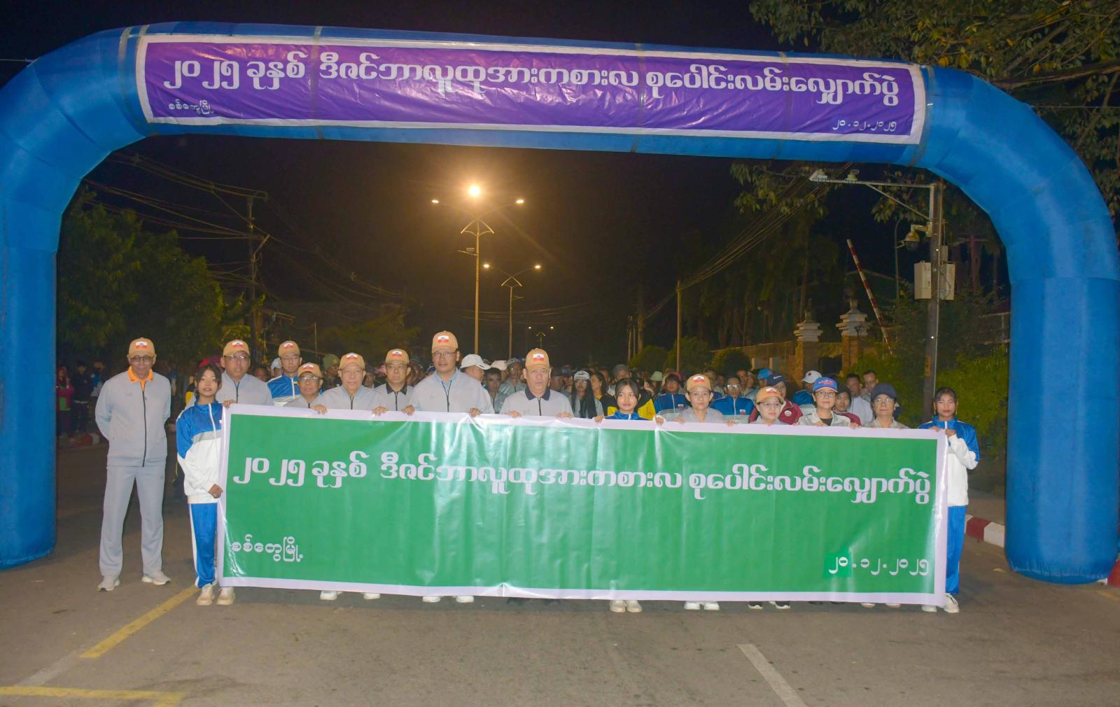 စုပေါင်းလမ်းလျှောက်ပွဲကို ရခိုင်ပြည်နယ် ဝန်ကြီးချုပ် ဦးထိန်လင်းနှင့်ဇနီး ပြည်နယ်အမျိုးသမီးရေးရာအဖွဲ့နာယက ဒေါ်ဆွေဆွေမြတ်၊ ပြည်နယ်တရားလွှတ်တော် တရားသူကြီးချုပ်နှင့် ပြည်နယ်အစိုးရအဖွဲ့ဝင်များက စတင်ဖွင့်လှစ်ပေးပြီး လမ်းလျောက်ပွဲကိုပါဝင် ဆင်နွှဲကြသည်။