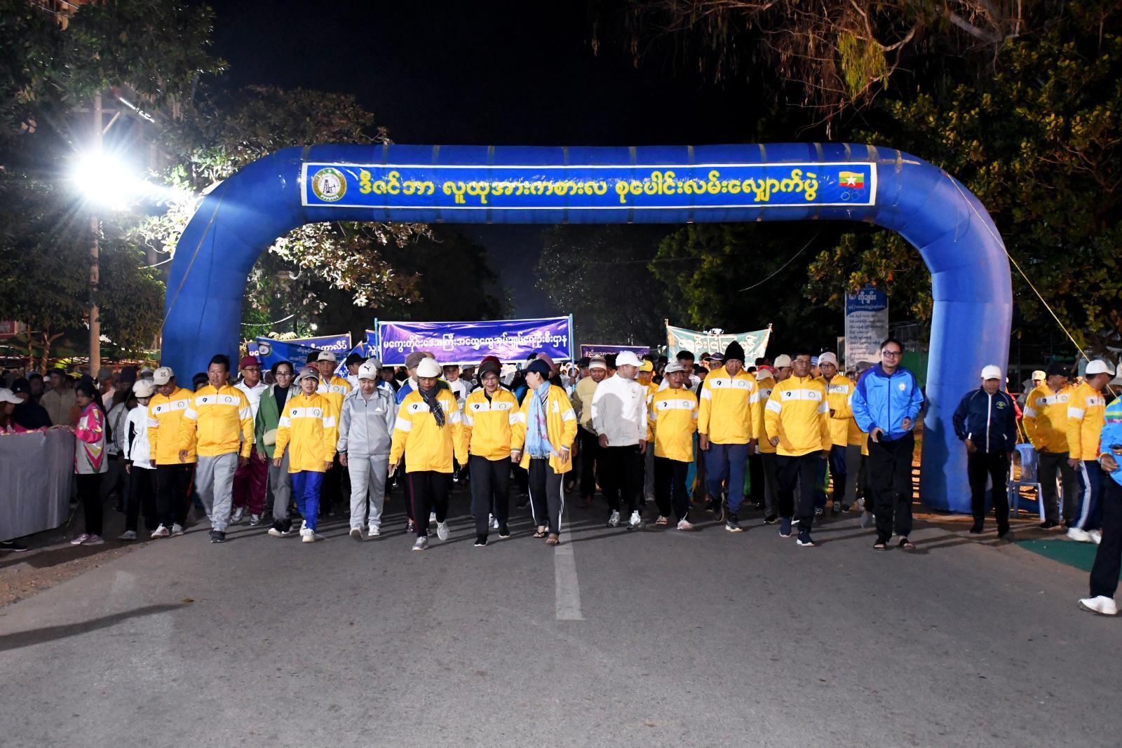 အဆိုပါ စုပေါင်းလမ်းလျှောက် ပါဝင်ဆင်နွှဲကြသူများသည် တိုင်းအားကစားကွင်းမှစတင်၍ ပြည်တော်သာလမ်း၊ ထိုမှတဆင့် မြို့ပတ်လမ်းတစ်လျှောက်၊ အ.ထ.က(၁)လမ်းမှ အဝေရာလမ်း အတိုင်းစုပေါင်းလမ်းလျှောက်၍ တိုင်းအားကစားကွင်းအတွင်း ပြန်လည်ဝင်ရောက်ပြီး စုပေါင်းကိုယ်လက်ကြံ့ခိုင်ရေး လေ့ကျင့်ခန်း အတွဲ(၁ + ၂) နှင့် Physical Fitness Dance လေ့ကျင့်ခန်းများကို စုပေါင်းလှုပ်ရှား ဆောင်ရွက်ခဲ့ကြပြီး စုပေါင်းလမ်းလျှောက် ပါဝင်သူများအား အချိုရည်နှင့် မုန့်များ ဝေငှပေးခဲ့ကြောင်းသိရသည်။