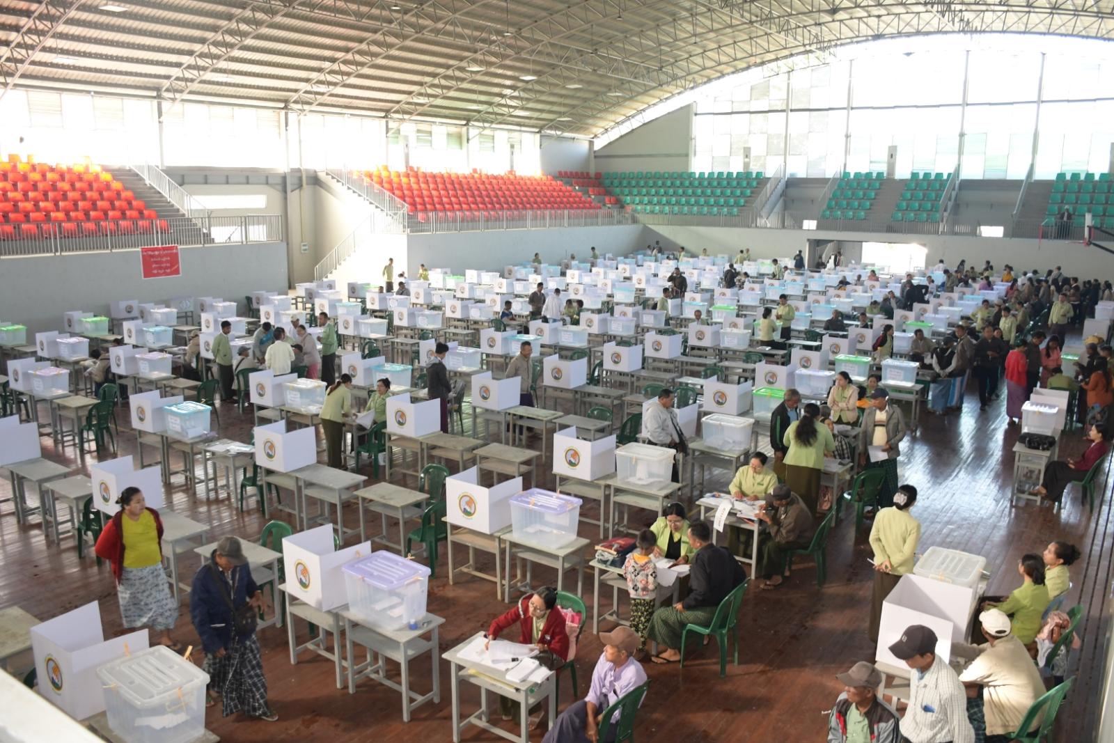 ပဲခူးတိုင်းဒေသကြီး၊ တောင်ငူခရိုင်အားကစားကွင်း၊ မိုးလုံလေလုံအားကစားခန်းမ၌ ယနေ့နံနက် (၈)နာရီအချိန်ခန့်က တောင်ငူမြို့နယ်အတွင်း ရွေးကောက်ပွဲတွင် တာဝန်ထမ်းဆောင်ရမည့် ခရိုင်နှင့်မြို့နယ်အဆင့် ဌာနဆိုင်ရာဝန်ထမ်းများ၊ ခရိုင်၊ မြို့နယ်၊ ရပ်ကွက်၊ ကျေးရွာ ကော်မရှင်အဖွဲ့ဥက္ကဋ္ဌနှင့် အဖွဲ့ဝင်များ ကြိုတင်ဆန္ဒမဲပေးကြသည်။