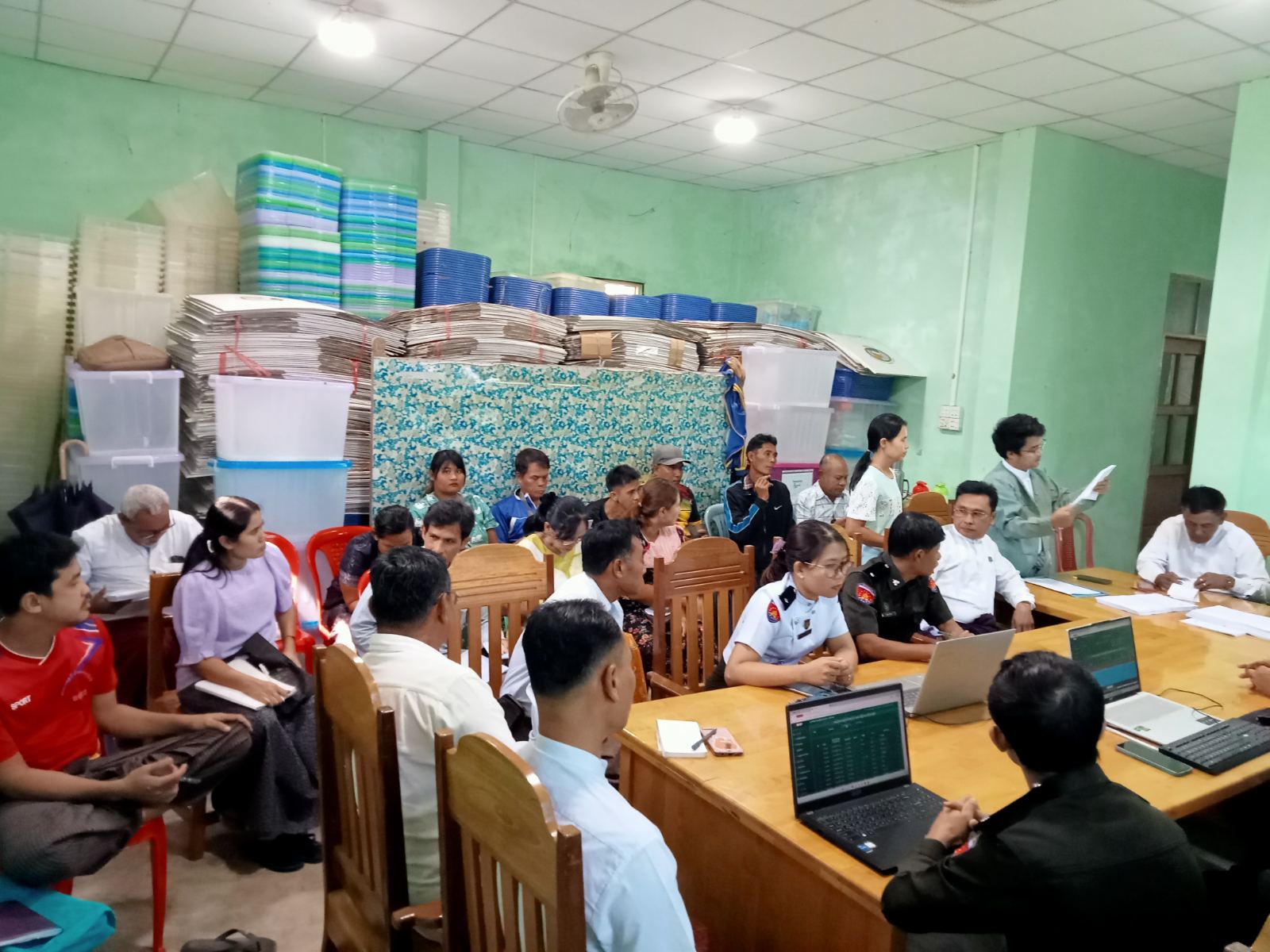 ထိုသို့ တိုက်ဆိုင်စစ်ဆေးရာတွင် ဒုတိယအကြိမ် မဲဆန္ဒရှင်စာရင်းများ ကြေညာပြီးနောက် မဲစာရင်းများ ပြည့်စုံမှန်ကန်စေရေးအတွက် မဲဆန္ဒရှင်များ၏ တောင်းဆိုမှု၊ ပြင်ဆင်မှုနှင့် ကန့်ကွက်မှုများအား စိစစ်ပြင်ဆင်ပြီး မဲစာရင်း(တတိယ)အကြိမ်ကို သက်ဆိုင်ရာ ရပ်ကွက်/ကျေးရွာအုပ်စု ကော်မရှင်အဖွဲ့ခွဲများနှင့် ကျေးရွာအုပ်စုအတွင်းရှိ ကျေးရွာများတွင် နောက်ဆုံးအကြိမ် ကပ်ထားကြေညာမည်ဖြစ်ရာ လူဝင်မှုကြီးကြပ်ရေးနှင့် ပြည်သူ့အင်အားဝန်ကြီးဌာန မြို့နယ်ဦးစီးမှူးရုံး၊ မြို့နယ်အထွေထွေအုပ်ချုပ်ရေးဦးစီးဌာန၊ မြို့နယ်ကော်မရှင်အဖွဲ့ခွဲရုံး ဝန်ထမ်းများ၊ ရပ်/ကျေးကော်မရှင်အဖွဲ့ဝင်များ၊ နိုင်ငံရေးပါတီများမှ ကိုယ်စားလှယ်အဖွဲ့များက ပူးပေါင်း၍ လူဝင်မှုကြီးကြပ်ရေးနှင့်ပြည်သူ့အင်အားဝန်ကြီးဌာန မြို့နယ်ဦးစီးမှူးရုံးမှ e-ID Sever ဖြင့် တိုက်ဆိုင်စစ်ဆေးဆောင်ရွက်နေမှုကို မြို့နယ် စီမံခန့်ခွဲရေးနှင့်အုပ်ချုပ်ရေးကော်မတီဥက္ကဋ္ဌ ဦးအောင်မြင့်သိန်း၊ မြို့နယ် လူဝင်မှုကြီးကြပ်ရေးနှင့်ပြည်သူ့အင်အားဝန်ကြီးဌာန မြို့နယ်ဦးစီးဌာနမှူး ဦးတင်အေး၊ မြို့နယ်ရွေးကောက်ပွဲ ကော်မရှင်အရာရှိ ဦးစိုးကိုကိုလွင်တို့က ကြည့်ရှုစစ်ဆေး၍ လိုအပ်သည်များ ပေါင်းစပ်ညှိနှိုင်း ဆောင်ရွက်ပေးခဲ့ကြောင်း သိရသည်။