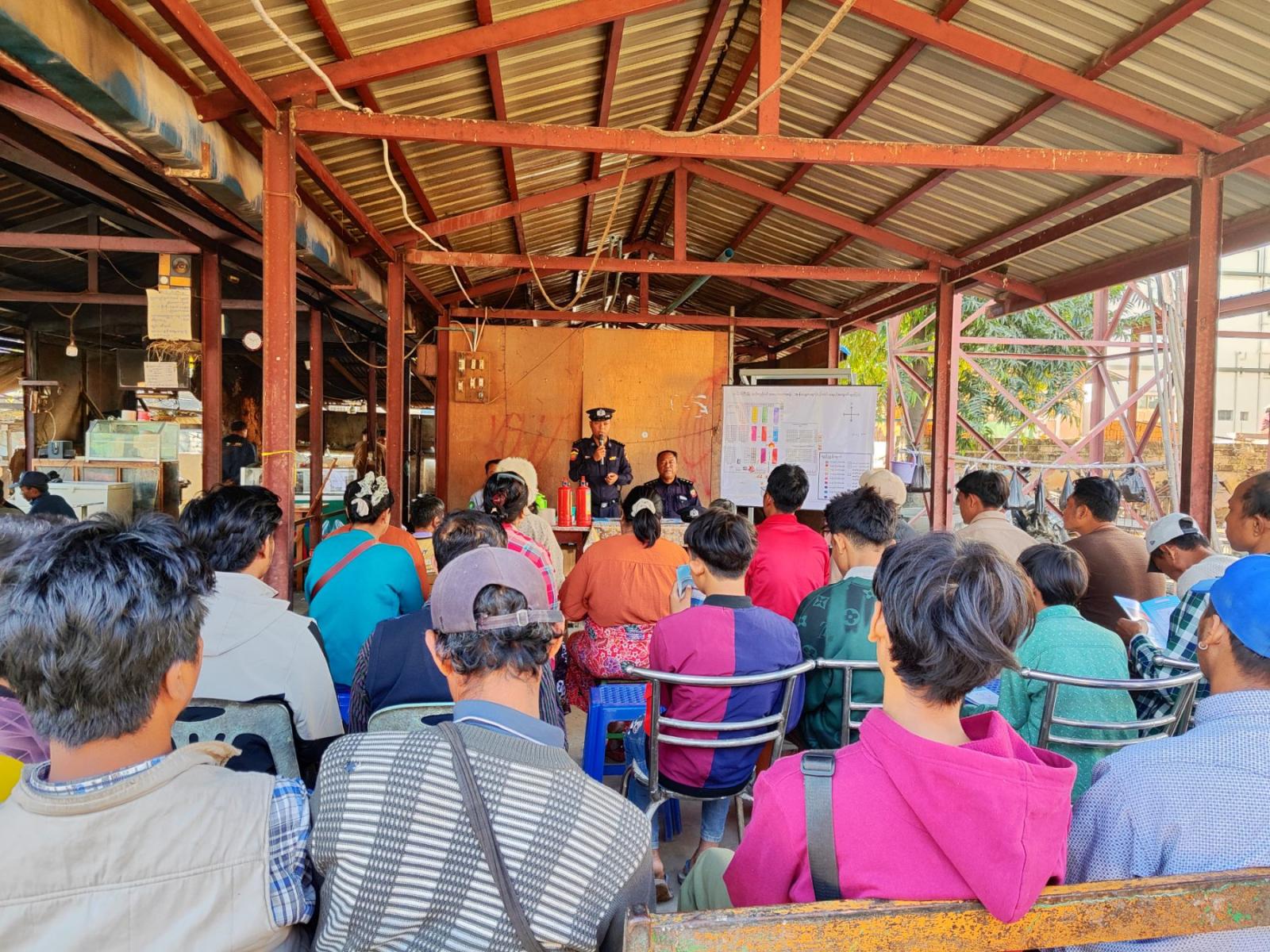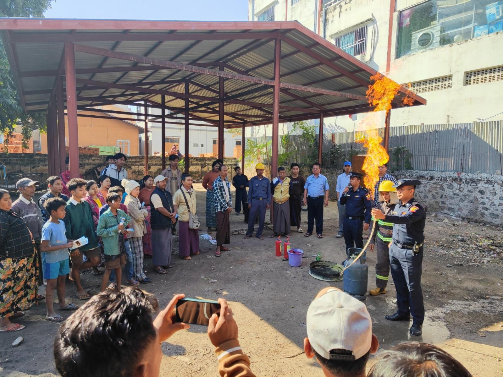 အဆိုပါဈေးအတွင်း ဈေးသူ/သားများအား မီးဘေးလုံခြုံရေး အသိပညာပေးဟောပြောခြင်း၊ လက်တွေ့မီးငြှိမ်းသတ်ခြင်း၊ လက်ကမ်းစာစောင်များဖြန့်ဝေခြင်း၊ မီးသတ်ယာဉ်များ၊ စေတနာမွန် လူမှုရေးအသင်းမှ ရေသယ်ယာဉ်များဖြင့် သဏ္ဍာန်တူ ဇာတ်တိုက်လေ့ကျင့် ဆောင်ရွက်ခဲ့ရာ ခရိုင်မီးသတ်ဦးစီးမှူး လက်ထောက်ညွှန်ကြားရေးမှူး ဦးမင်းမင်းစိုးမှ လိုက်လံကြည့်ရှု စစ်ဆေးခဲ့ပြီး၊ လိုအပ်သည်များ မှာကြားခဲ့ကြောင်း သိရှိရသည်။