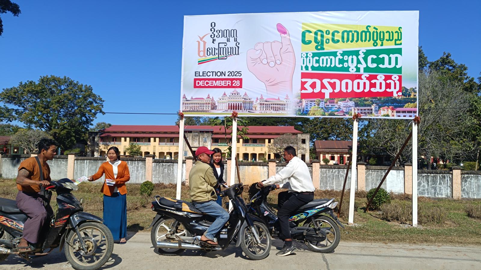ထိုသို့ ဆောင်ရွက်ရာတွင် မော်လိုက်ခရိုင်စီမံခန့်ခွဲရေးနှင့် အုပ်ချုပ်ရေးကော်မတီဥက္ကဋ္ဌ ဦးနေထွန်းအောင်နှင့် အဖွဲ့ဝင်များ၊ မြို့နယ်စီမံခန့်ခွဲရေးနှင့် အုပ်ချုပ်ရေးကော်မတီဥက္ကဋ္ဌ ဦးကျော်ဆန်းဦးနှင့် အဖွဲ့ဝင်များ၊ ခရိုင်နှင့် မြို့နယ်ရွေးကောက်ပွဲကော်မရှင်အဖွဲ့ခွဲဥက္ကဋ္ဌများနှင့် အဖွဲ့ဝင်များ၊ ခရိုင်/မြို့နယ်အဆင့် ဌာနဆိုင်ရာတာဝန်ရှိသူများ၊ ခရိုင်ပြန်ကြားရေးနှင့်ပြည်သူ့ဆက်ဆံရေးဦးစီးဌာနမှ ဝန်ထမ်းများ၊ ခရိုင်/မြို့နယ်မိခင်နှင့် ကလေးစောင့်ရှောက်ရေးအသင်းနှင့် အမျိုးသမီးရေးရာအဖွဲ့မှ အဖွဲ့ဝင်များ၊ ရွေးကောက်ခံပါတီများမှ လွှတ်တော်ကိုယ်စားလှယ်လောင်းများနှင့် ရပ်ကွက်အုပ်ချုပ်ရေးမှူးများက ပညာလမ်းဘေး အ.ထ.က ကျောင်းရှေ့၌ (၂၀ ပေ ၉ ပေ) ရှိသည့် ဒို့အတူတူမဲပေးကြမယ်၊ ရွေးကောက်ပွဲမှသည် ပိုမိုကောင်းမွန်သော အနာဂတ်ဆီသို့ မြေစိုက်ပိုစတာအားစိုက်ထူခဲ့ကြသည်။