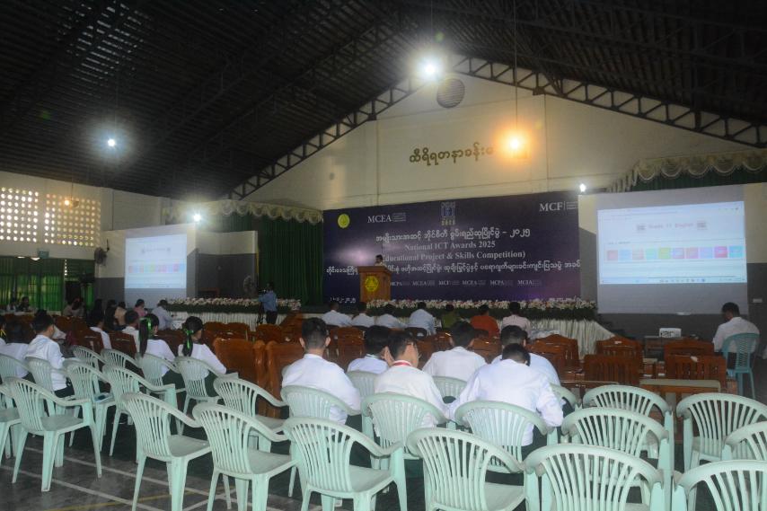 ပညာရေးဝန်ကြီးဌာနနှင့် မြန်မာနိုင်ငံ ကွန်ပျူတာအသင်းချုပ်တို့ ပူးပေါင်းကျင်းပသည့် အမျိုးသားအဆင့် အိုင်စီတီစွမ်းရည်ဆုပြိုင်ပွဲ ၂၀၂၅ National ICT Award 2025 (Educational Project and Skills Competition) တိုင်းဒေသကြီးနှင့် ပြည်နယ်ပေါင်းစုံ ဗဟိုအဆင့်ပြိုင်ပွဲကို ယနေနံနက် (၉)နာရီက ရန်ကုန်တိုင်းဒေသကြီး အလုံမြို့နယ်ရှိ အမှတ်(၄) အခြေခံပညာထက်တန်းကျောင်ရှိ သီရိရတနာခန်းမတွင် ကျင်းခဲ့ရာ မူလတန်းအဆင့်၊ အလယ်တန်းအဆင့်နှင့် အထက်တန်းအဆင့်၊ ဆရာအဆင့်၊ စီမံရေးရာဝန်ထမ်းအဆင့် ပြိုင်ပွဲများသို့ တိုင်းဒေသကြီး၊ ပြည်နယ်များမှာ အဖွဲ့ပေါင်း (၅၅)ဖွဲ့ ဝင်ရောက်ယှဉ်ပြိုင်ခဲ့ကြသည်။