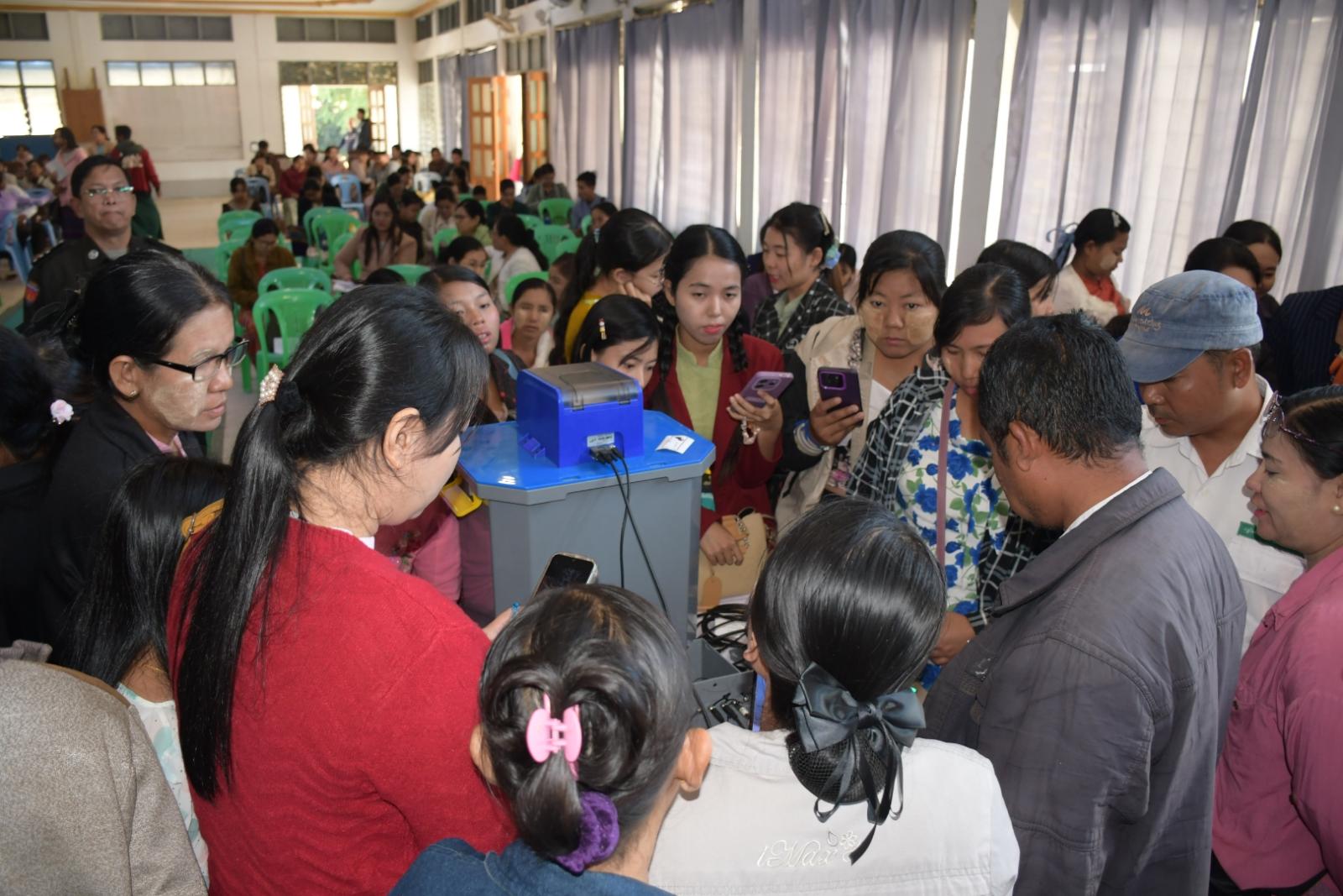 ပဲခူးတိုင်းဒေသကြီး၊ တောင်ငူခရိုင်၊ တောင်ငူမြို့နယ်၌ ၂၀၂၅ ခုနှစ် ပါတီစုံအထွေထွေရွေးကောက်ပွဲ အပိုင်း (၁) အောင်မြင်စွာကျင်းပနိုင်ရေးအတွက် တောင်ငူခရိုင် စီမံခန့်ခွဲရေးနှင့်အုပ်ချုပ်ရေးကော်မတီအဖွဲ့မှ ကြီးကြပ်၍ မဲပေးစက်၊ စက်ကိုင်များအား မွမ်းမံသင်တန်းကို ယနေ့နံနက် (၉) နာရီအချိန်က ကေတုရတနာခန်းမနှင့် အ.ထ.က (၄) ကျောင်းတို့၌ မွမ်းမံသင်တန်းဖွင့်လှစ်သည်။