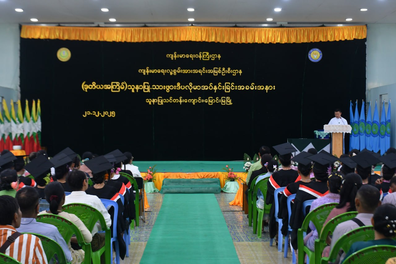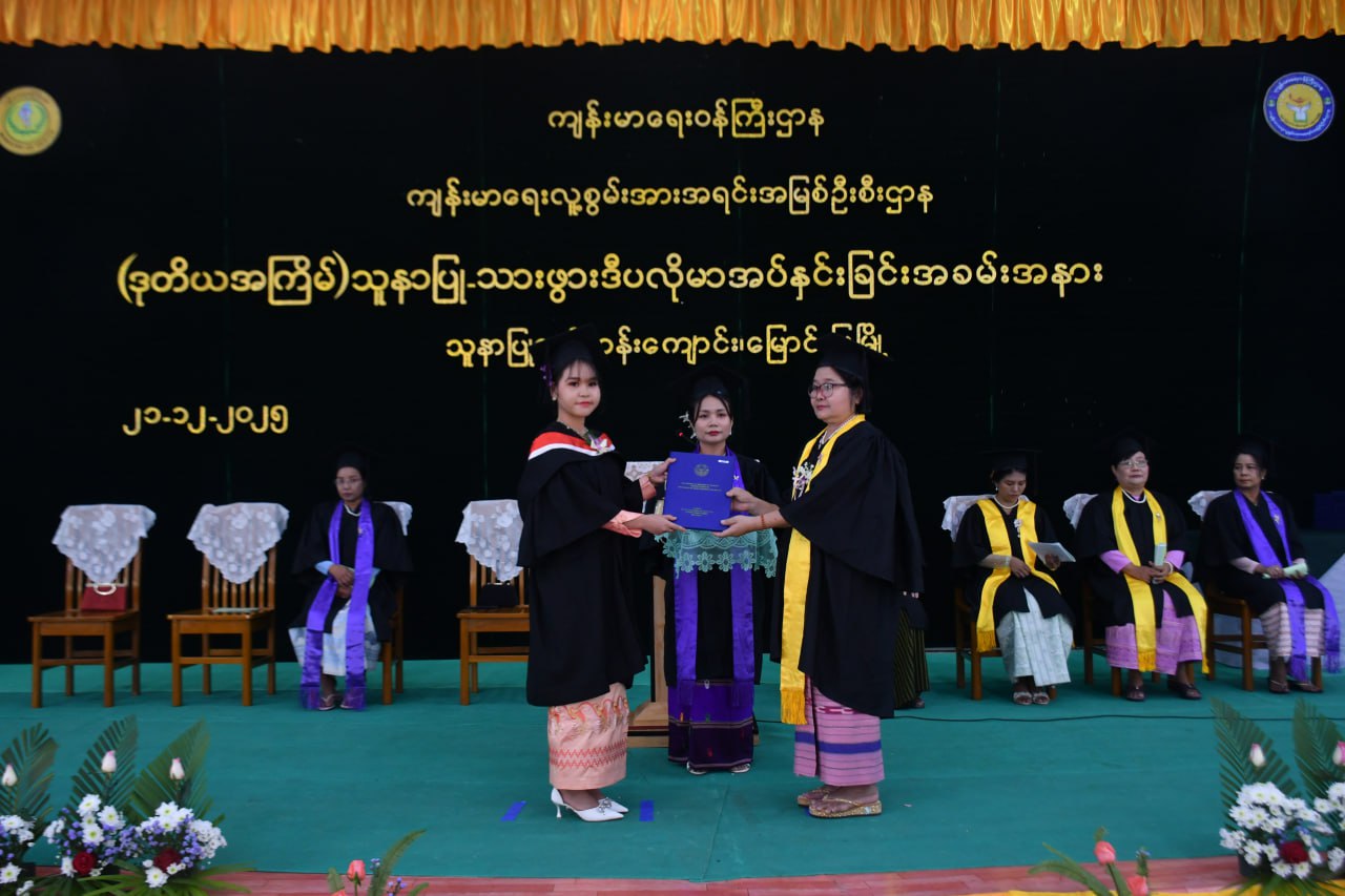 ဆက်လက်၍ ဒုတိယပိုင်းအခမ်းအနားအစီအစဉ်တွင် သူနာပြုသင်တန်းကျောင်းမှ ကျောင်းအုပ်ဆရာမကြီး နော်ကပေါ်ရှီးက အမှာစကားပြောကြားခဲ့ပြီး သူနာပြုသစ္စာအဓိဋ္ဌာန်အား တိုင်ကြားပေးခဲ့ရာ သင်တန်းသား၊ သင်တန်းသူများက လိုက်ပါရွတ်ဆိုခဲ့သည်။ ထို့နောက် လုပ်ငန်းခွင်ဝင်မည့် သင်တန်းသား၊ သင်တန်းသူများအား သူနာပြု-သားဖွား ဒီပလိုမာများ အပ်နှင်းခဲ့ကြောင်း သိရသည်။