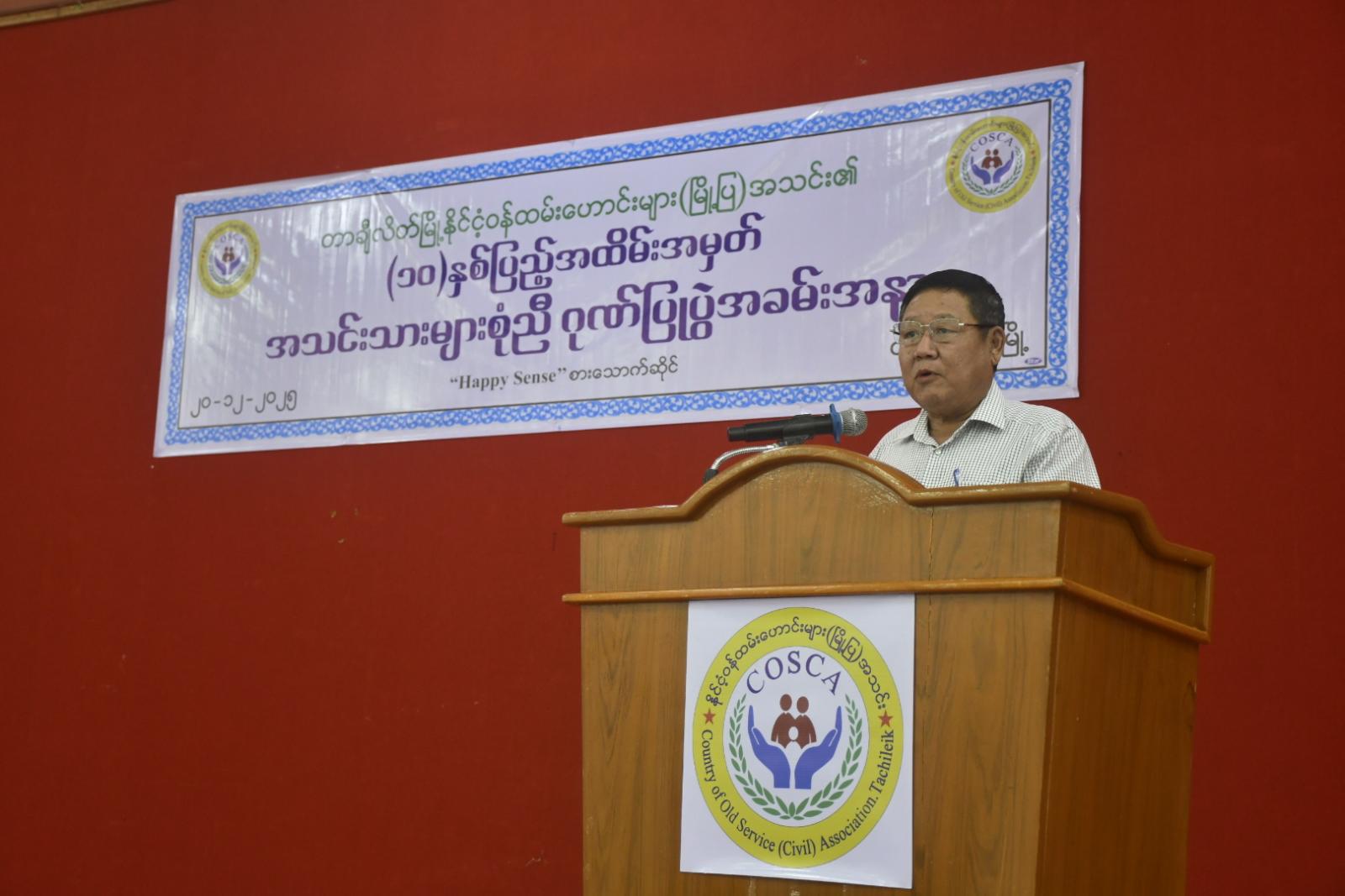 ထို့နောက် ခရိုင်စီမံခန့်ခွဲရေးနှင့်အုပ်ချုပ်ရေးကော်မတီဥက္ကဋ္ဌ ဦးတင့်ဝေသုံ၊ ခရိုင်ရဲတပ်ဖွဲ့မှူး ဒုတိယရဲမှူးကြီး နေမျိုးနှင့် တာဝန်ရှိသူများက အသင်းအတွက် မတည်ငွေကျပ်သိန်း ၂၄၀ လှူဒါန်းပေးခဲ့သည့် အသင်းမှ အလုပ်အမှုဆောင် မြေစာရင်းဦးစီးဌာနမှ အငြိမ်းစားဖြစ်သူ ဦးလှမြင့်ဦးနှင့် အခမ်းအနားတွင်လှူဒါန်းပေးသည့် အလှူရှင်များအား ဂုဏ်ပြုမှတ်တမ်းလွှာများပေးအပ်ပြီး အသက် (၇၅)နှစ်အထက်နှင့် အသက် (၈၀)နှစ် အထက် အသင်းသားများအား ထောက်ပံ့ငွေနှင့် လက်ဆောင်ပစ္စည်းများပေးအပ်ခဲ့ကြောင်း သိရသည်။