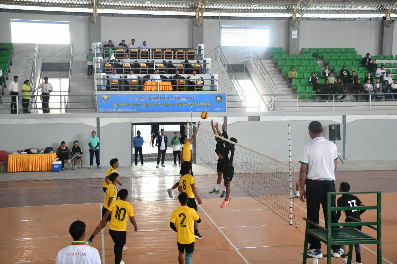 ဆက်လက်၍ နေပြည်တော်ကောင်စီဥက္ကဋ္ဌ ဦးသန်းထွန်းဦးနှင့်တာဝန်ရှိသူများသည် ဇမ္ဗူသီရိမြို့နယ်၊ ရွှေကြာပင်ရပ်ကွက် နေပြည်တော်အားကစားရုံ၌ ၂၀၂၅-ခုနှစ်၊ နေပြည်တော်ကောင်စီဥက္ကဋ္ဌဖလား မြို့နယ်ပေါင်းစုံ အသက် ၂၅ နှစ်အောက် အမျိုးသား/အမျိုးသမီး ဘောလီဘောပြိုင်ပွဲ ယှဉ်ပြိုင်နေမှုအား ကြည့်ရှုအားပေးခဲ့သည်။
