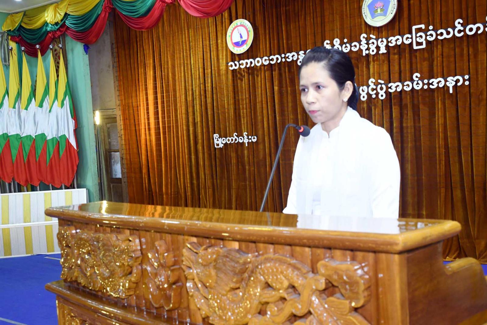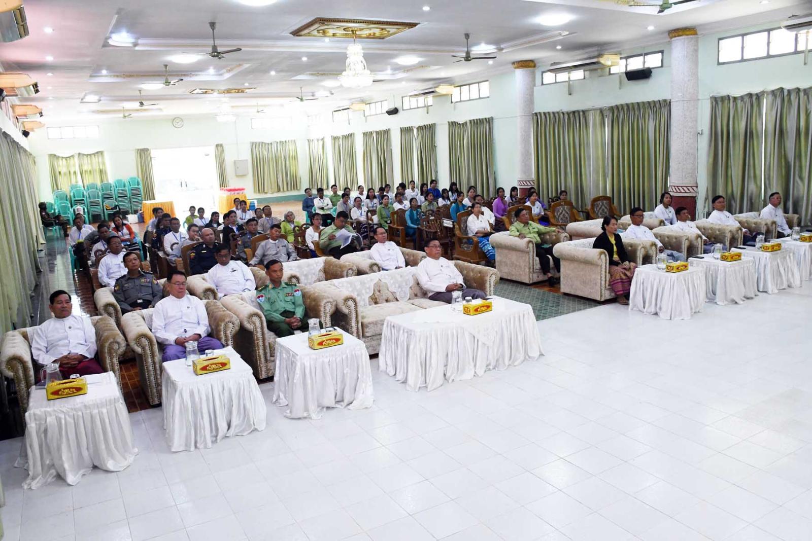 အခမ်းအနားတွင် တိုင်းဒေသကြီးဝန်ကြီးချုပ် ဦးမြတ်ကိုက တိုင်းဒေသကြီးအတွင်း သဘာဝဘေးအန္တရာယ်စီမံခန့်ခွဲမှုအဖွဲ့၏လုပ်ငန်းကော်မတီများသာမက တိုင်းဒေသကြီးအတွင်းဌာနဆိုင်ရာများအနေဖြင့် သဘာဝဘေးအန္တရာယ်နှင့်စပ်လျဉ်းသည့် အသိပညာများတိုးပွားကာ ဘေးအန္တရာယ်စီမံခန့်ခွဲမှုလုပ်ငန်းများ ဆောင်ရွက်ရာတွင် အချင်းချင်းပူးပေါင်းဆောင်ရွက်မှု ပိုမိုအားကောင်းလာမှာဖြစ်ကြောင်း၊ ထို့အပြင် အချင်းချင်းချိတ်ဆက်မှုအား ကောင်းစွာဖြင့် ဘေးဒဏ်ကြံ့ကြံ့ခံ ရင်ဆိုင်နိုင်စွမ်းရှိသည့် လူ့အသိုက်အဝန်းတစ်ခု ပေါ်ထွန်းလာစေရန်ရည်ရွယ်၍ ဖွင့်လှစ်ခြင်းဖြစ်ကြောင်း၊ သဘာဝကနေဖြစ်ပွားလာသည့်ဘေးအန္တရာယ်များကို တားဆီးလို့မရသောကြောင့် ထိခိုက်ပျက်စီး ဆုံးရှုံးမှုများကို လျော့နည်းသက်သာစေရန်အတွက် နိုင်ငံတော်အနေဖြင့် အမျိုးသားသဘာဝဘေးအန္တရာယ်ဆိုင်ရာ စီမံခန့်ခွဲမှု ကော်မတီက ဦးဆောင်ပြီးကြိုတင်ပြင်ဆင်ခြင်း၊ အရေးပေါ်တုံ့ပြန်ခြင်း၊ ပြန်လည်ထူထောင်ခြင်းစသည့် အဆင့်အလိုက် ကြီးကြပ်လမ်းညွှန် ဆောင်ရွက်လျက်ရှိသလို မိမိတို့တိုင်းဒေသကြီးအတွင်းမှာလည်း တိုင်းဒေသကြီးသဘာဝဘေးစီမံခန့်ခွဲမှုအဖွဲ့ကို လုပ်ငန်းကော်မတီ(၁၂)ခုနှင့် ဖွဲ့စည်းပြီးသဘာဝဘေး စီမံခန့်ခွဲမှုလုပ်ငန်းများကို ချိတ်ဆက်ပူးပေါင်းဆောင်ရွက်လျက်ရှိကြောင်း၊ သင်တန်းသား၊ သင်တန်းသူများအနေဖြင့် မိမိတို့၏ဌာနများတွင် လက်တွေ့လုပ်ဆောင်နေရသည့်လုပ်ငန်းအတွေ့အကြုံများဖြင့် သင်တန်းကရရှိလာမည့် အသိပညာဗဟုသုတများကိုပေါင်းစပ်ပြီး မိမိပတ်ဝန်းကျင်နှင့် လုပ်ငန်းနယ်ပယ် အသီးသီးတွင်ပြန်လည် အသုံးချဆောင်ရွက်နိုင်သောအခြေအနေထိရောက်အောင် ကြိုးစားသင်ယူကြစေလိုကြောင်း၊ သဘာဝဘေး အန္တရာယ်စီမံခန့်ခွဲမှုလုပ်ငန်းများကို မိမိတို့၏လုပ်ငန်းနယ်ပယ်နှင့်ပေါင်းစပ်ပြီး ဌာနများအကြားပူးပေါင်း ဆောင်ရွက်မှုမြှင့်တင်နိုင်စေရန်၊ ဘေးအန္တရာယ်များရင်ဆိုင်ကြုံတွေ့လာရပါက လည်း ထိရောက်လျင်မြန်စွာ ကိုင်တွယ်ဖြေရှင်းနိုင်ရေးနှင့် အရည်အသွေးပြည့်ဝသောသင်တန်းသား၊ သင်တန်းသူများဖြစ်စေရန်အတွက် သင်ခန်းစာများကိုစိတ်ပါဝင်စားစွာဖြင့် သင်ယူလေ့လာကာ ပြည်သူများအကြား သဘာဝဘေးအန္တရာယ်နှင့် ပတ်သက်ပြီးရင်ဆိုင်တွေ့ကြုံနေရသောအခက်အခဲများ ကိုဖြေရှင်းနိုင်ရေးအတွက် တာဝန်သိစိတ်ကိုယ်စီဖြင့် ကျရာကဏ္ဍအလိုက်ပူးပေါင်းပါဝင်ဆောင်ရွက် ပေးကြရန်လိုအပ်ကြောင်းပြောကြားသည်။