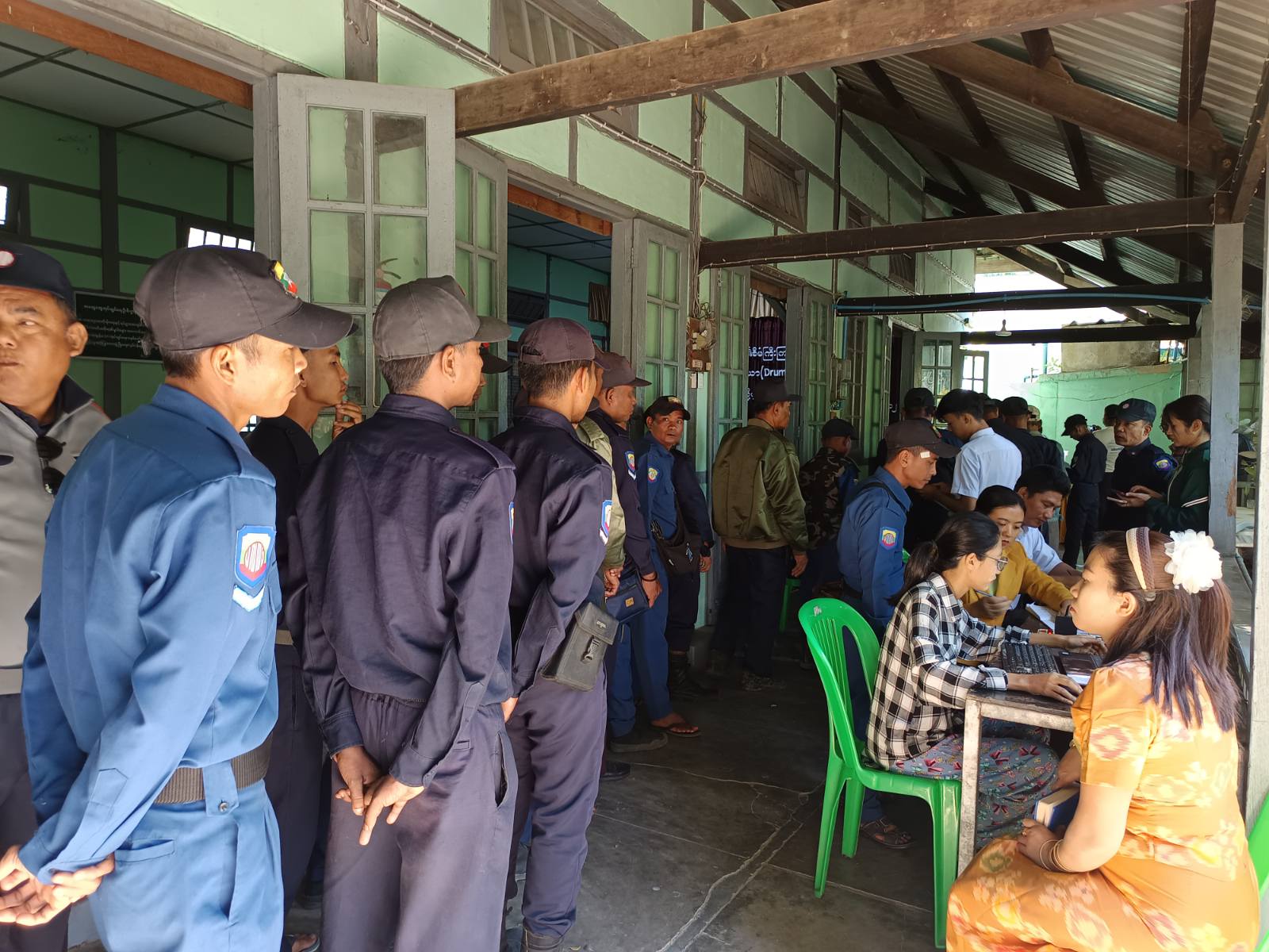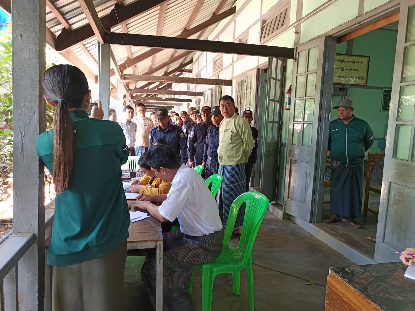 အဆိုပါလုံခြုံရေးတာဝန်ချထားမည့်သူများ ကြိုတင်ဆန္ဒမဲပေးရာသို့ မြို့နယ်စီမံခန့်ခွဲရေးနှင့် အုပ်ချုပ်ရေးကော်မတီဥက္ကဋ္ဌ ဦးဟံဝင်းအောင်၏ ကြီးကြပ်ဆောင်ရွက်မှုဖြင့် မြို့နယ်ရွေးကောက်ပွဲကော်မရှင်အဖွဲ့ခွဲဥက္ကဋ္ဌ ဦးမျိုးဝင်းနှင့် အဖွဲ့ဝင်များ၊ ရပ်/ကျေး ကော်မရှင်အဖွဲ့ဝင်များက ကြိုတင်ဆန္ဒမဲပေးနိုင်ရေး ဆောင်ရွက်ပေးခဲ့ရာ လုံခြုံရေးတာဝန်ချထားမည့်သူ ကျား (၁၆၆) ဦး၊ မ (၂၅) ဦး စုစုပေါင်း (၁၉၁) ဦးကြိုတင်ဆန္ဒမဲပေးခဲ့ကြောင်း သိရသည်။