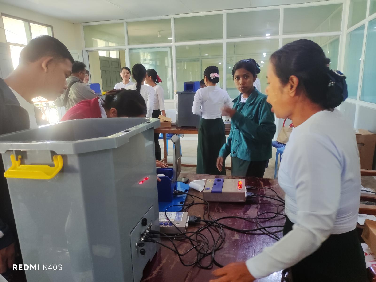 ကျိုက်မရောမြို့နယ်၌ ၂၀၂၅ ခုနှစ် ပါတီစုံဒီမိုကရေစီအထွေထွေရွေးကောက်ပွဲကျင်းပမည့်ရက်တွင် မဲရုံများ၌ တာဝန်ထမ်းဆောင်ကြမည့် မဲရုံမှူး၊ ဒုမဲရုံမှူး၊ အရန်မဲရုံမှူးနှင့် ထိန်းချုပ်စက်ကိုင်တွယ်မည့်သူများအား အီလက်ထရောနစ်မဲပေးစက် ကိုင်တွယ်အသုံးပြုခြင်းဆိုင်ရာ သင်တန်းပေးခြင်းကို ယနေ့နံနက်ပိုင်းက မြိုနယ်အထွေထွေအုပ်ချုပ်ရေးဦးစီးဌာနခန်းမ၌ ပြုလုပ်သည်။