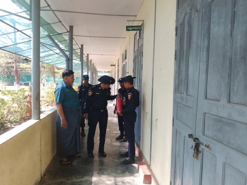 ထိုသို့ ဆောင်ရွက်ရာတွင် မြို့နယ်မီးသတ်ဦးစီးဌာနဦးစီးမှူး ဦးတင်မျိုးလွင်နှင့် မီးသတ်တပ်ဖွဲ့ဝင်များက အမှတ် ၁ ၊၂ ၊၃ ၊ ၄ ၊ ၁၁ ၊ ၁၂ ရပ်ကွက်ရှိ မဲရုံပြုလုပ်မည့် နေရာများအား လျှပ်စစ်ဝါယာကြိုးဆိုလာနှင့် လျှပ်စစ်ပစ္စည်းများ၊ မီးသတ်ဆေးဗူးနှင့် မီးငြှိမ်းသတ်ရေးပစ္စည်းများ ကောင်းမွန်ခြင်း ရှိ/မရှိတို့ကို ကွင်းဆင်း၍ စစ်ဆေးခဲ့ပြီး လိုအပ်သည်များကို တာဝန်ရှိသူများအား ဆောင်ရွက်ထားနိုင်ရေးမှာကြားခဲ့ကြောင်း သိရသည်။ ထို့အပြင် ကျန်ရှိနေသေးသော ရပ်ကွက်နှင့် ကျေးရွာများရှိ မဲရုံပြုလုပ်မည့် နေရာများသို့ ဆက်လက်ကွင်းဆင်းစစ်ဆေးဆောင်ရွက်သွားမည်ဖြစ်ကြောင်း သိရသည်။