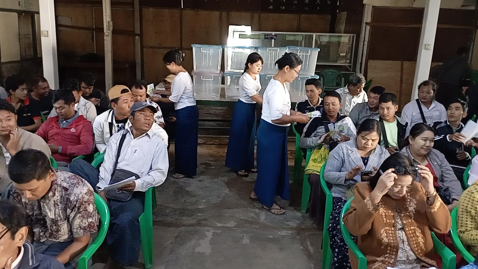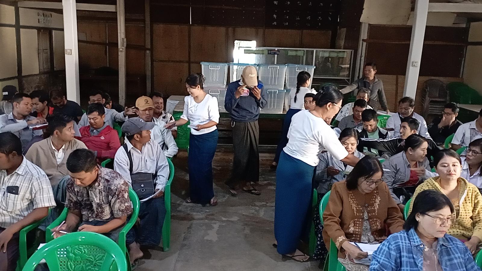 ထို့နောက် မြို့နယ်ပြန်ကြားရေးနှင့်ပြည်သူ့ဆက်ဆံရေးဦးစီးဌာနမှ ဝန်ထမ်းများနှင့် မြို့နယ်ရွေးကောက်ပွဲကော်မရှင်အဖွဲ့ (ခွဲ) ရုံးမှ ဝန်ထမ်းများက “ဒို့အတူတူမဲပေးကြမယ်” ရွေးကောက်ပွဲအောင်မြင်ရေးလှုံ့ဆော်မှု လက်ကမ်းစာစောင်များ၊ MEVM မဲပေးစက်အသုံးပြု၍ ဆန္ဒမဲပေးပုံလုပ်ငန်းအဆင့်ဆင့်ပါရှိသော လက်ကမ်းစာစောင်များအား ဖြန့်ဝေပေးခဲ့ကြောင်း သိရှိရသည်။