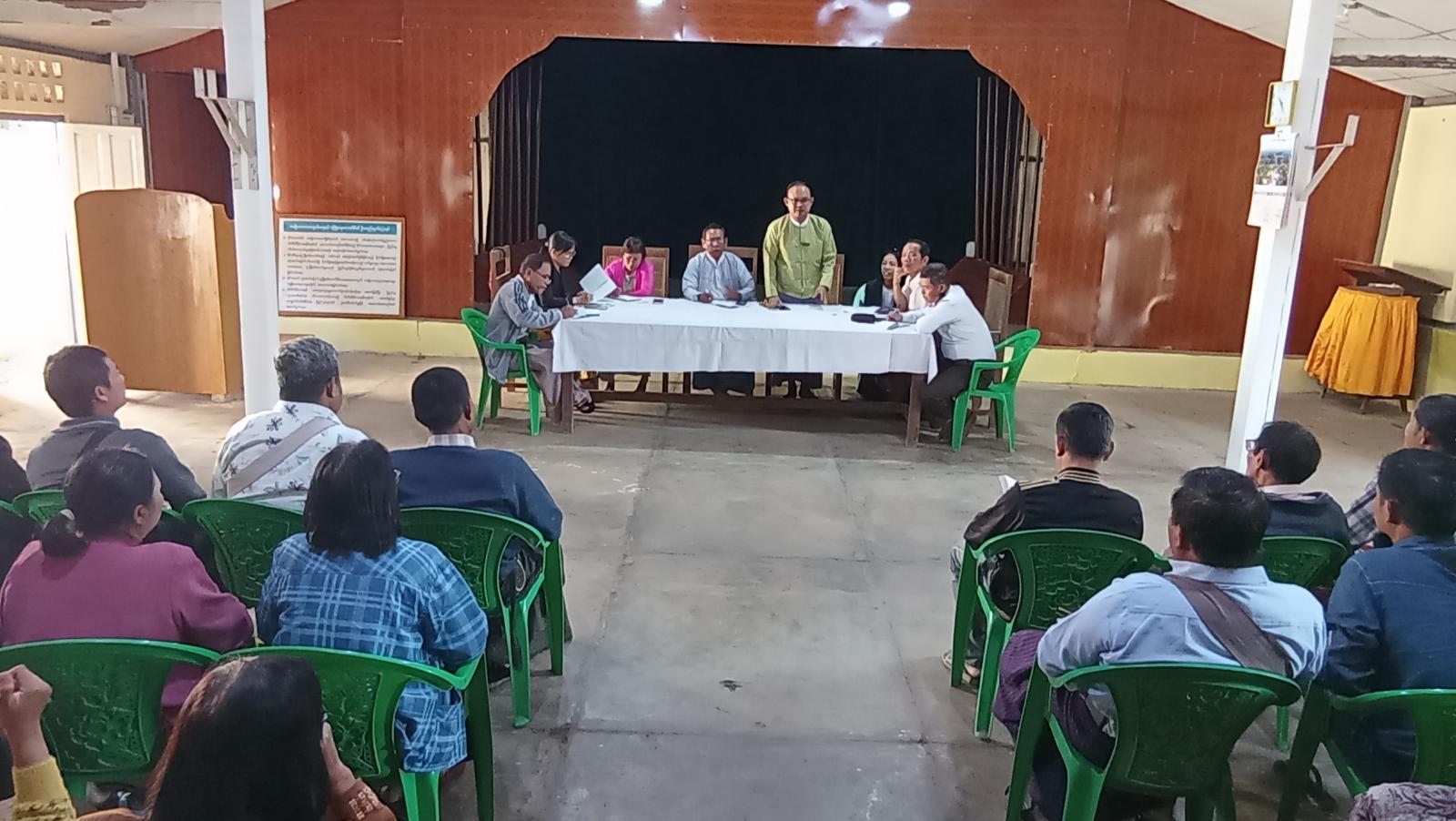 ရှေးဦးစွာ ဒုတိယမြို့နယ်အုပ်ချုပ်ရေးမှူး ဦးစောပြည့်စုံက အဖွင့်အမှာစကားပြောကြားပြီး၊ မြို့နယ်ရွေးကောက်ပွဲကော်မရှင်အဖွဲ့ (ခွဲ) ရုံးမှ ဦးစီးအရာရှိ ဒေါ်သူဇာခင်နှင့် မြို့နယ်ရွေးကောက်ပွဲကော်မရှင်အဖွဲ့ (ခွဲ) ဥက္ကဋ္ဌ ဦးအေးသိုက်တို့က တတိယအကြိမ် ထုတ်ပြန်ကြေညာမည့် မဲဆန္ဒရှင်စာရင်းတိကျမှန်ကန်စေရန်၊ မဲပေးပိုင်ခွင့်ရှိသူများအနေဖြင့် မဲပေးခွင့်မဆုံးရှုံးစေရေး၊ မဲဆန္ဒရှင်စာရင်းများ ပြည့်စုံမှန်ကန်မှုရှိစေရေးအတွက် သက်ဆိုင်ရာဌာနများမှ တာဝန်ရှိသူများအနေဖြင့် ကဏ္ဍအလိုက် တင်ပြကြရန်၊ ရွေးကောက်ပွဲအောင်မြင်စွာ ကျင်းပနိုင်ရေးသက်ဆိုင်ရာဌာနများအနေဖြင့် ပူးပေါင်းဆောင်ရွက်ကြရန်၊ ရွေးကောက်ပွဲကျင်းပနိုင်မည့် ရပ်ကွက်/ ကျေးရွာ အုပ်စုများအနေဖြင့် လက်ရှိဆောင်ရွက်နေမှုအခြေအနေများနှင့် အခြားလိုအပ်သည့် လုပ်ငန်းကိစ္စရပ်များအား ရှင်းလင်းဆွေးနွေးပြောကြားခဲ့သည်။ ဆက်လက်၍ တက်ရောက်လာသူများမှ မဲစာရင်းများ မှန်ကန်မှုရှိစေရန်အတွက် ဆောင်ရွက်မှုလုပ်ငန်းများနှင့် မဲစာရင်းပြုစုထားရှိမှုအခြေအနေအား ရှင်းလင်းတင်ပြခဲ့သည်။