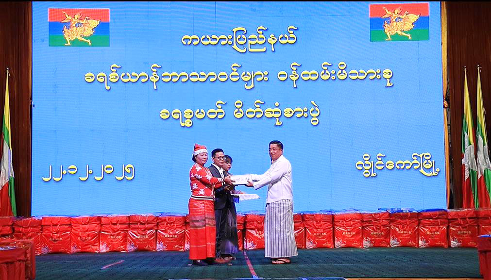 ထို့နောက် ပြည်နယ်ဝန်ကြီးချုပ်က ဒေသကွပ်ကဲရေးမှူး၊ ပြည်နယ်တရားသူကြီးချုပ်၊ ပြည်နယ်အစိုးရအဖွဲ့ဝင်များနှင့် ခရစ်ယာန်ဘာသာဝင် ဌာနဆိုင်ရာတာဝန်ရှိသူများအတွက် ခရစ္စမတ်လက်ဆောင်ပစ္စည်းများပေးအပ်ရာ သယံဇာတရေးရာဝန်ကြီးနှင့် ဌာနဆိုင်ရာတာဝန်ရှိသူနှစ်ဦးက လက်ခံရယူသည်။