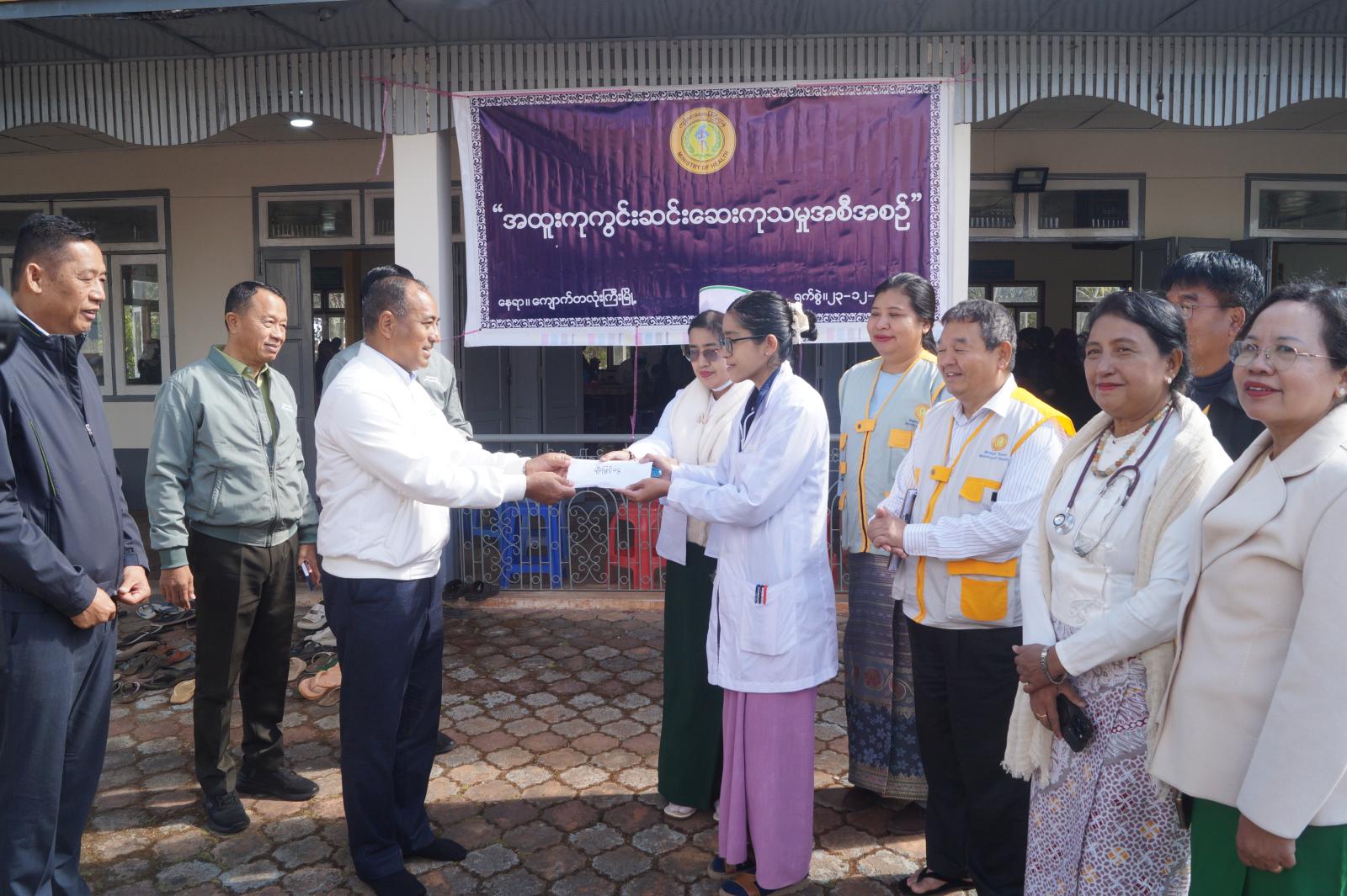 ရှမ်းပြည်နယ်(တောင်ပိုင်း)၊ တောင်ကြီးခရိုင်၊ ကျောက်တလုံးကြီးမြို့၌ အထူးကုကွင်းဆင်းဆေးကုသမှုအစီအစဉ်အဖြစ် ကျန်းမာရေးဝန်ကြီးဌာန အထူးကုဆရာဝန်အဖွဲ့ (၇) ဖွဲ့ အခမဲ့ကွင်းဆင်းစစ်ဆေးကုသပေးခြင်းကို ပထမနိမ္မိတသပိတ်မြတ်ဘုရားတွင် ယနေ့နံနက် ၈ နာရီက ဆောင်ရွက်ရာ ရှမ်းပြည်နယ်အစိုးရအဖွဲ့၊ ပြည်နယ်ဝန်ကြီးချုပ် ဦးအောင်အောင်၊ ပြည်နယ်သယံဇာသရေးရာဝန်ကြီး၊ ပြည်နယ်လူမှုရေးရာဝန်ကြီး၊ ပြည်နယ်အစိုးရအဖွဲ့အတွင်းရေးမှူးနှင့် တာဝန်ရှိသူများက ကြည့်ရှုအားပေးကြသည်။