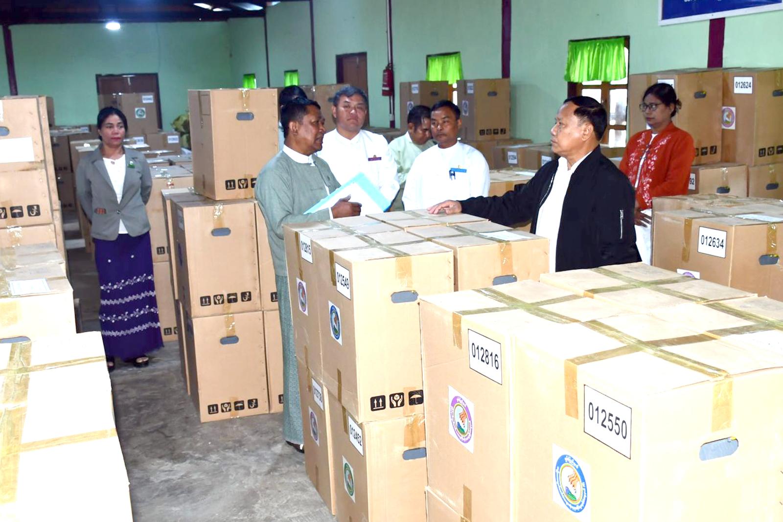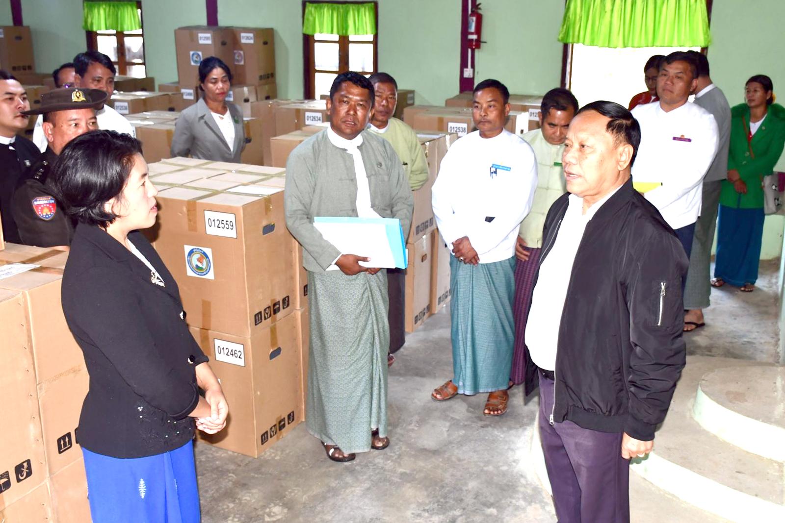 ဆက်လက်၍ မိုင်းဆတ်မြို့နယ်၊ မယ်ဆွမ်မြောက်ရပ်ကွက်၊ မဲရုံအမှတ်(၂)တွင် မဲရုံမှူး၊ ဒုတိယမဲရုံမှူးနှင့် မဲရုံအဖွဲ့ဝင် လုပ်ငန်းလမ်းညွှန်ပါ အီလက်ထရောနစ်မဲပေးစက်အသုံးပြုသည့် မဲရုံအတွက် နေရာချထားမှုပုံစံဖြင့် မဲရုံခင်းကျင်းထားရှိမှုများလိုက်လံကြည့်ရှုစစ်ဆေးပြီး ခရိုင်ရွေးကောက်ပွဲကော်မရှင်အဖွဲ့ခွဲရုံးတွင် ခရိုင်/ မြို့နယ်စီမံခန့်ခွဲရေးနှင့်အုပ်ချုပ်ရေးကော်မတီဥက္ကဋ္ဌများ၊ ခရိုင်/မြို့နယ်ရွေးကောက်ပွဲကော်မရှင်အဖွဲ့ခွဲဥက္ကဋ္ဌနှင့် အဖွဲ့ဝင်များ၊ ခရိုင်/ မြို့နယ်ရွေးကော်ပွဲ ကော်မရှင်အဖွဲ့ခွဲ အရာထမ်း၊ အမှုထမ်းများနှင့်တွေ့ဆုံ၍ ရွေးကောက်ပွဲဆိုင်ရာလုပ်ငန်းစဉ်များ၊ ဆက်လက်ဆောင်ရွက်ရမည့် လုပ်ငန်းများအား အသေးစိတ်လမ်းညွှန်၍ လိုအပ်သည်များ မှာကြားခဲ့ကြောင်း သတင်းရရှိသည်။
