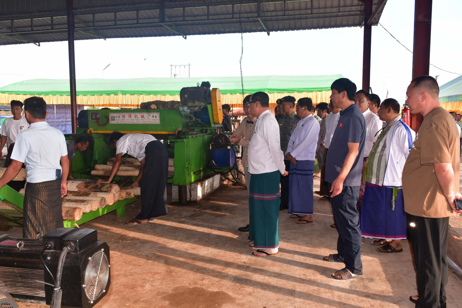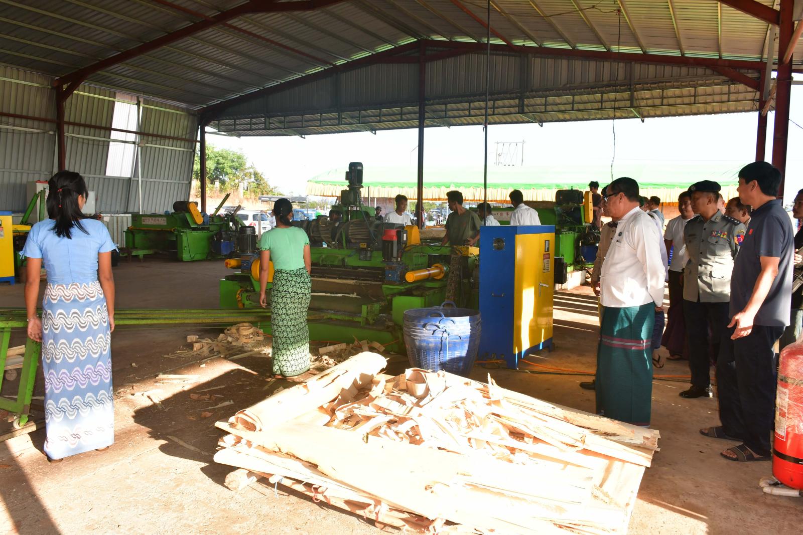 ယင်းနောက် ပြည်နယ်ဝန်ကြီးချုပ်နှင့်တာဝန်ရှိသူများသည် သစ်ပါးလွှာစက်ရုံရှိ အထပ်သားအခွံခွာ အကြမ်းစက်၊ အထပ်သားအချောစက်၊ ဓါးသွေးစက်၊ ဖိသိပ်ထုပ်ပိုးစက်များဖြင့် ရာဘာသစ်ပါးလွှာ ထုတ်လုပ်ပုံအဆင့်ဆင့်နှင့် အရည်အသွေးခွဲခြားပါကင်ထုတ်ပိုးထားရှိမှု၊ စက်ရုံထုတ်ကုန်ပစ္စည်းများကို လှည့်လည်ကြည့်ရှုအားပေးပြီး တာဝန်ရှိသူများအား လိုအပ်သည်များမှာကြားခဲ့သည်။