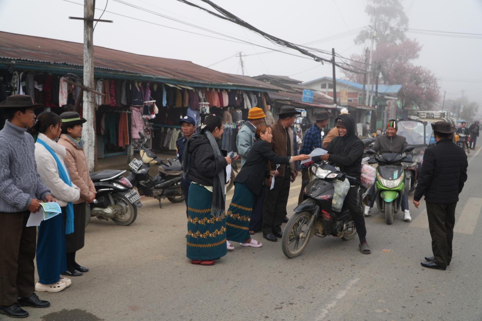 ချင်းပြည်နယ်၊ ဟားခါးမြို့၌ ၂၀၂၅ ခုနှစ် ပါတီစုံဒီမိုကရေစီ ရွေးကောက်ပွဲအတွက် ဒေသဘာသာစကားဖြင့် ပြန်ဆိုထားသည့် မဲဆန္ဒရှင်အသိပညာပေးလက်ကမ်းစာစောင်ဖြန့်ဝေခြင်း ကိမ်ပိန်းကို ဒီဇင်ဘာလ ၂၂ ရက် နံနက်ပိုင်းက ဗိုလ်ချုပ်လမ်း၊ ခရိုင်စုပေါင်းရုံးရှေ့နှင့် တလန်ဟရောန်းလမ်း ချင်းပြည်နယ် လွှတ်တော်ရုံးရှေ့များတွင် ဆောင်ရွက်ကြသည်။