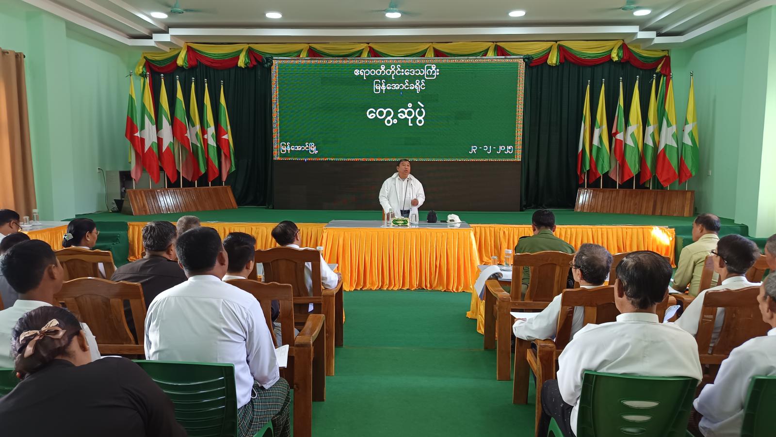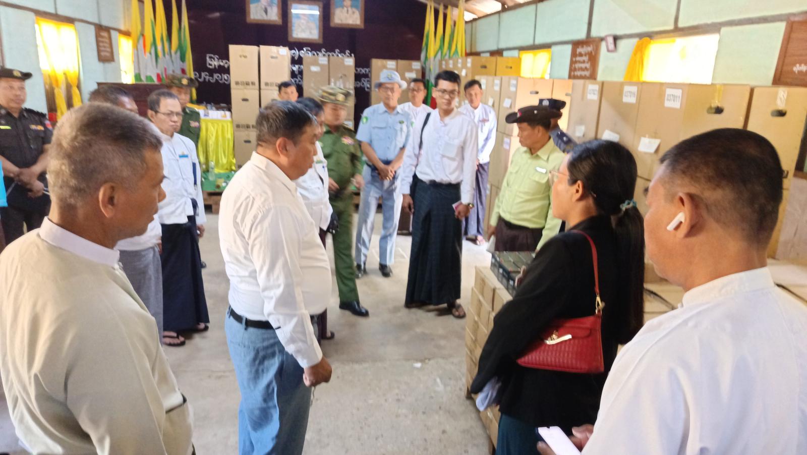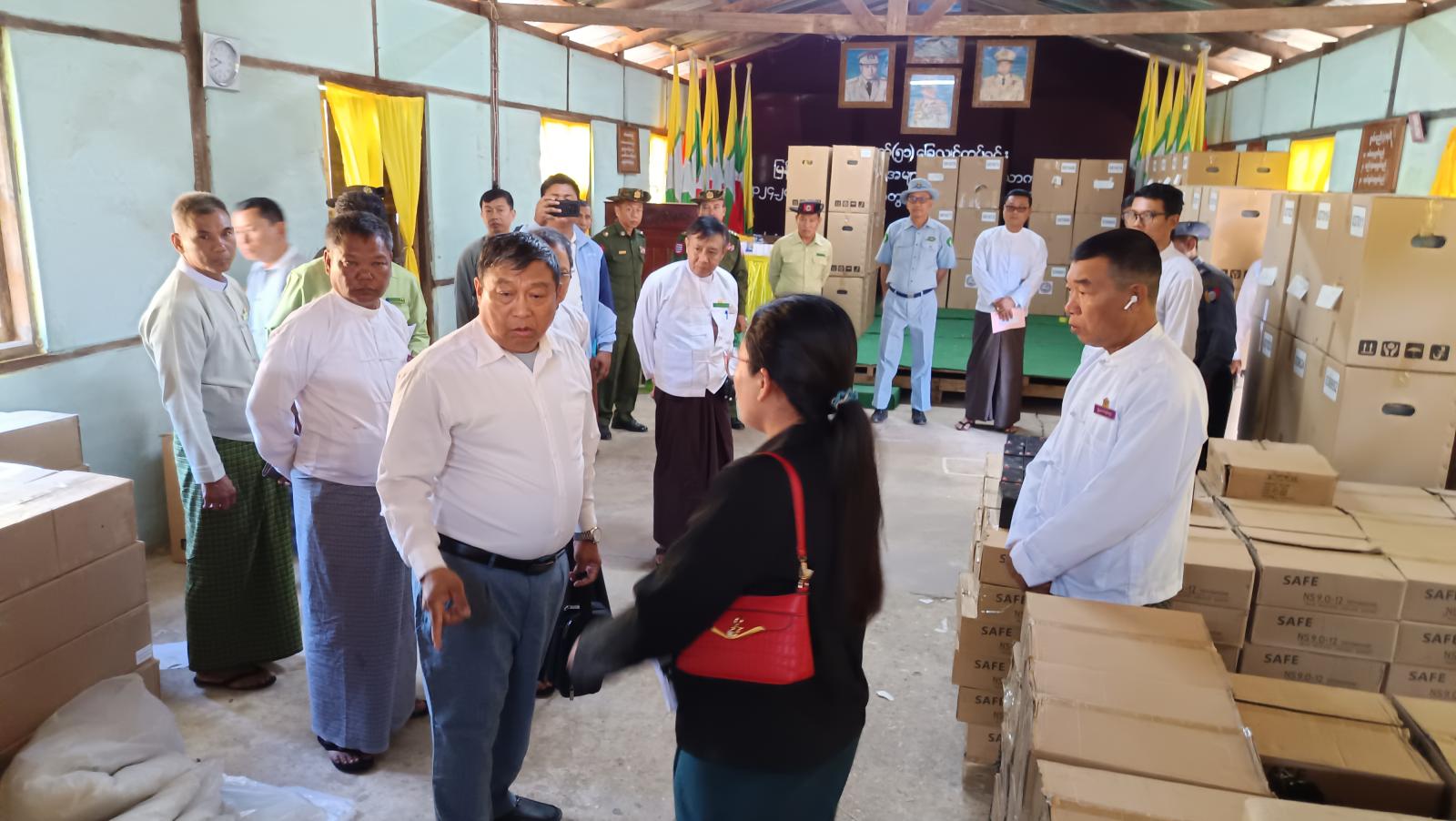 ပြည်ထောက်စုရွေးကောက်ပွဲကော်မရှင်အဖွဲ့ဝင် ဧရာဝတီတိုင်းဒေသကြီးတာဝန်ခံ ဦးတင်ဆွေဝင်းသည် ယမန်နေ့နံနက်က မြန်အောင်မြို့နယ်၌ မြန်မာအီလက်ထရောနစ်မဲပေးစက်နှင့် ဆက်စပ်ပစ္စည်းများ ထိန်းသိမ်းထားရှိမှုတို့အားကြည့်ရှုစစ်ဆေး၍ ၂၀၂၅ ခုနှစ် ပါတီစုံ ဒီမိုကရေစီအထွေထွေရွေးကောက်ပွဲ အောင်မြင်စွာကျင်းပပြုလုပ်နိုင်ရေးအတွက် တိုင်း၊ ခရိုင်၊မြို့နယ်တို့မှ တာဝန်ရှိသူများနှင့် မြန်အောင်ခရိုင်စုပေါင်းရုံးခန်းမ၌ တွေ့ဆုံဆွေးနွေးခဲ့သည်။