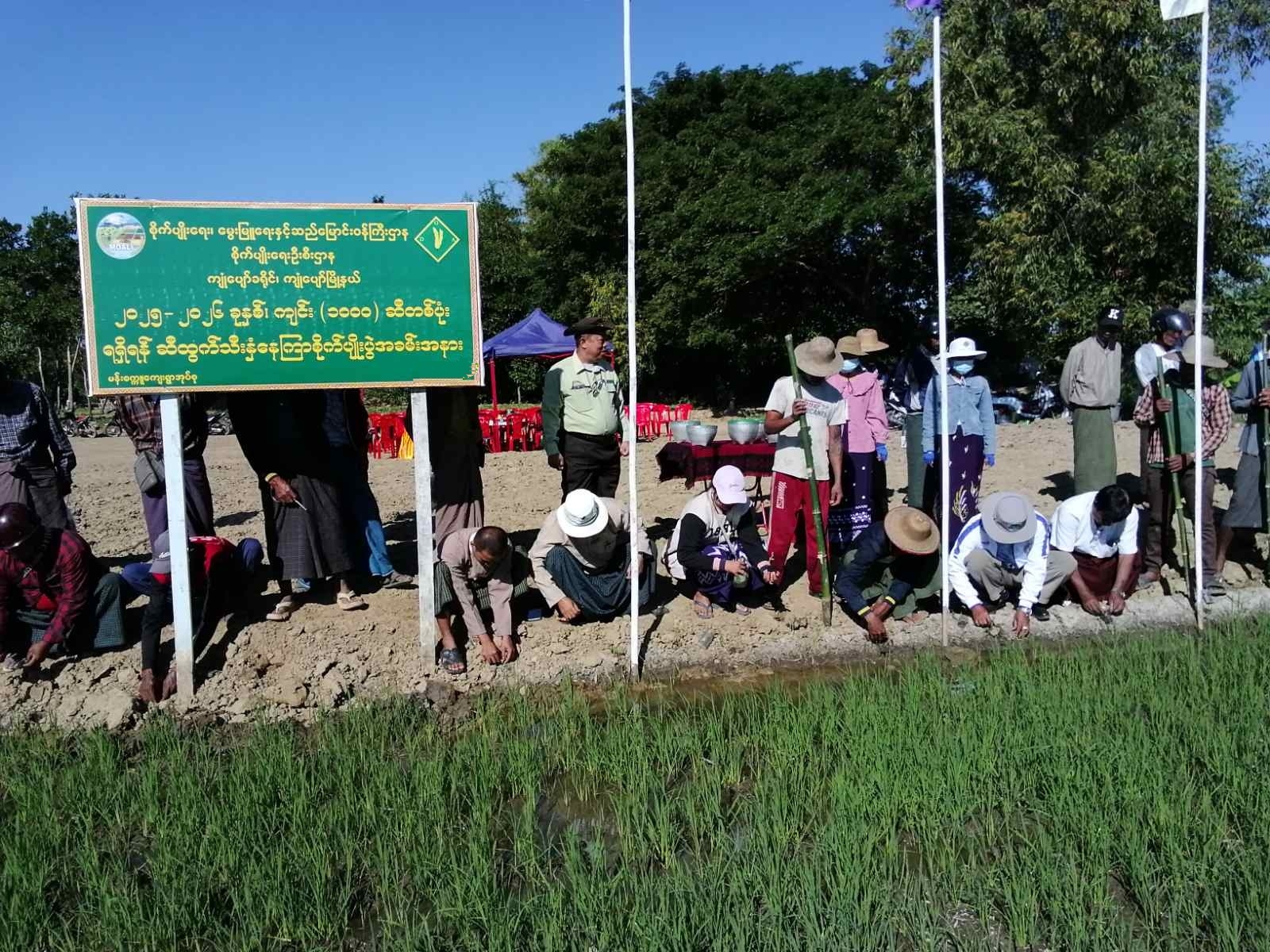 ပြည်တွင်းစားသုံးဆီ ဖူလုံစွာရရှိရေးအတွက် ဧရာဝတီတိုင်းဒေသကြီး၊ ကျုံပျော်ခရိုင်၊ ကျုံပျော်မြို့နယ် မန်းစက္ကူကျေးရွာအုပ်စု ရေနောက်ကျေးရွာ ကွင်းအမှတ် (၁၀၆၃) တောင်သူ ဦးမောင်မြင့်၏ လယ်မြေဧရိယာ ၇ ဧက၌ မျိုး(၈)မျိုး ယှဉ်ပြိုင်စမ်းသပ်ကွက် နေကြာကျင်း(၁၀၀၀) ဆီတစ်ပုံး စိုက်ပျိုးခြင်းကို ဒီဇင်ဘာ ၂၃ ရက်နေ့ နံနက် ၈ နာရီက ကျင်းပပြုလုပ်ခဲ့ကြောင်း သိရသည်။