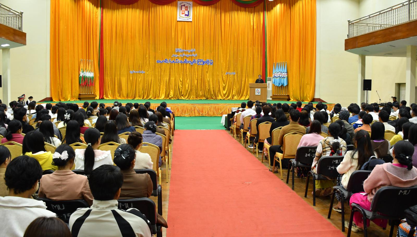 ကချင်ပြည်နယ်၊ မြစ်ကြီးနားတက္ကသိုလ်၏ ၂၀၂၅-၂၀၂၆ ပညာသင်နှစ်၊ မောင်မယ်သစ်လွင် ကြိုဆိုပွဲအခမ်းအနားကို ဒီဇင်ဘာ ၂၄ ရက်က မြစ်ကြီးနားတက္ကသိုလ် ဘွဲ့နှင်းသဘင်ခန်းမ၌ ကျင်းပပြုလုပ်ရာ ပြည်နယ်ဝန်ကြီးချုပ် ဦးခက်ထိန်နန် တက်ရောက်အားပေးချီးမြှင့်သည်။