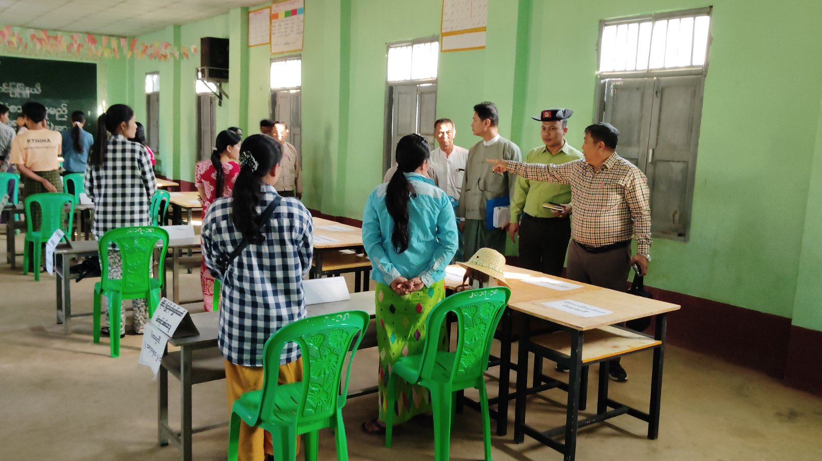 ပြည်ထောင်စုရွေးကောက်ပွဲကော်မရှင်အဖွဲ့ဝင်၊ ဧရာဝတီတိုင်းဒေသကြီး တာဝန်ခံ ဦးတင်ဆွေဝင်းသည် မြောင်းမြမြို့ရှိ မဲရုံများပြင်ဆင်ထားရှိမှုအခြေအနေများအား ဒီဇင်ဘာလ ၂၄ ရက်က ကွင်းဆင်းကြည့်ရှုခဲ့သည်။