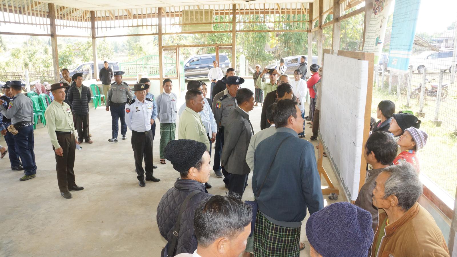ပြည်ထောင်စုရွေးကောက်ပွဲကော်မရှင်အဖွဲ့ဝင် ကချင်ပြည်နယ်တာဝန်ခံ ဦးခင်ဇော်သည် ပြည်နယ်ရွေးကောက်ပွဲကော်မရှင်အဖွဲ့ဝင် ဦးဒိန်ရထင်ဗေး၊ ဦးသိန်းစိုးနှင့် ပြည်နယ်ရွေးကောက်ပွဲအရာရှိ ဦးမျိုးမင်းဦး၊ ခရိုင်စီမံခန့်ခွဲရေးနှင့်အုပ်ချုပ်ရေးကော်မတီဥက္ကဋ္ဌ ဦးစိုးထွန်းတို့နှင့်အတူ ဒီဇင်ဘာ(၂၅)ရက် နံနက်ပိုင်းက ပူတာအိုခရိုင်အတွင်းရှိ ပူတာအို၊ မချမ်းဘောမြို့နယ်များတွင် မဲရုံခင်းကျင်းပြင်ဆင်ဆောင်ရွက်ထားရှိမှုများနှင့် တတိယအကြိမ် အတည်ပြုပြီး မဲစာရင်းများ ကပ်ထားကြောငြာထားရှိမှုများအား ကွင်းဆင်းစစ်ဆေးသည်။