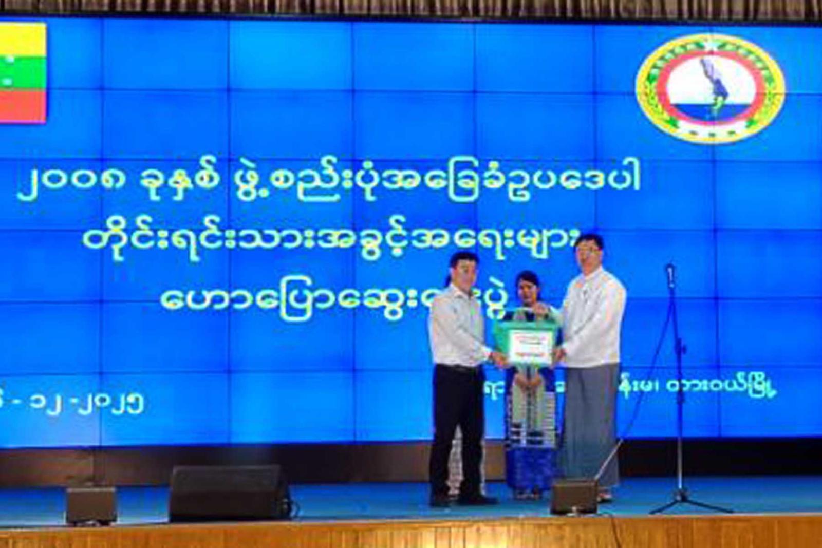ဆက်လက်၍ အသိပညာပေးဟောပြောသော ဒုတိယဝန်ကြီးနှင့် အကြံပေးပုဂ္ဂိုလ်အား တိုင်းဒေသကြီး တိုင်းရင်းသားရေးရာဝန်ကြီးက အမှတ်တရ လက်ဆောင်ပစ္စည်းပေးအပ်ပြီး ကျေးဇူးတင်စကား ပြန်လည်ပြောကြားသည်။