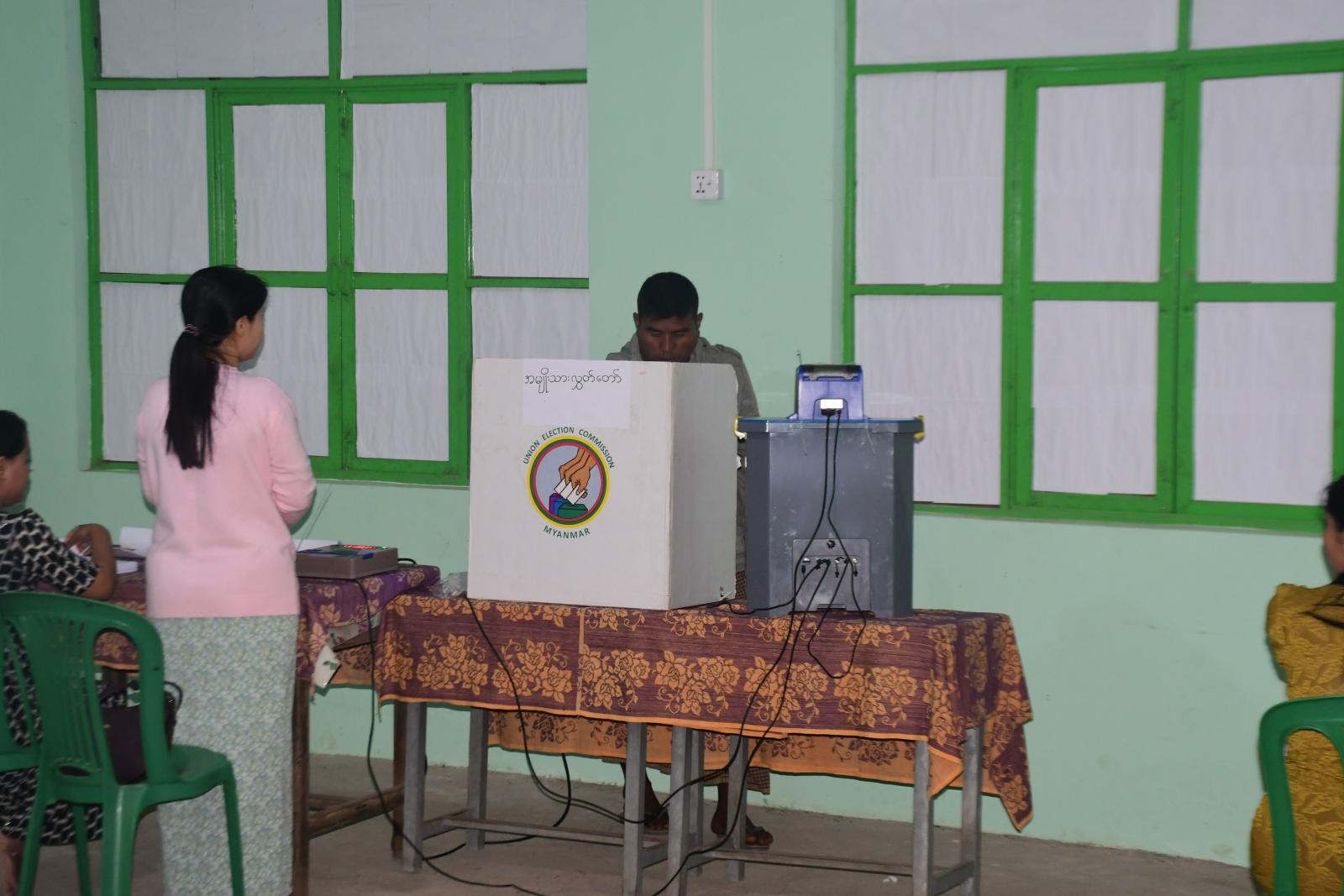 ထို့နောက် ဆန္ဒမဲပေးရန် စောင့်ဆိုင်းနေသည့် မဲဆန္ဒရှင်ပြည်သူများမှ နိုင်ငံသားစိစစ်ရေးကတ်ပြားနှင့်အတူ မဲစာရင်းလက်မှတ်ပြသပြီး လျှို့ဝှက်ဆန္ဒပြုခန်းများ၌ MEVM မဲပေးစက်ဖြင့် လွှတ်တော်အသီးသီးအတွက် ကိုယ်စားလှယ်များကို ဆန္ဒပြုရွေးချယ်ကြသည်။
