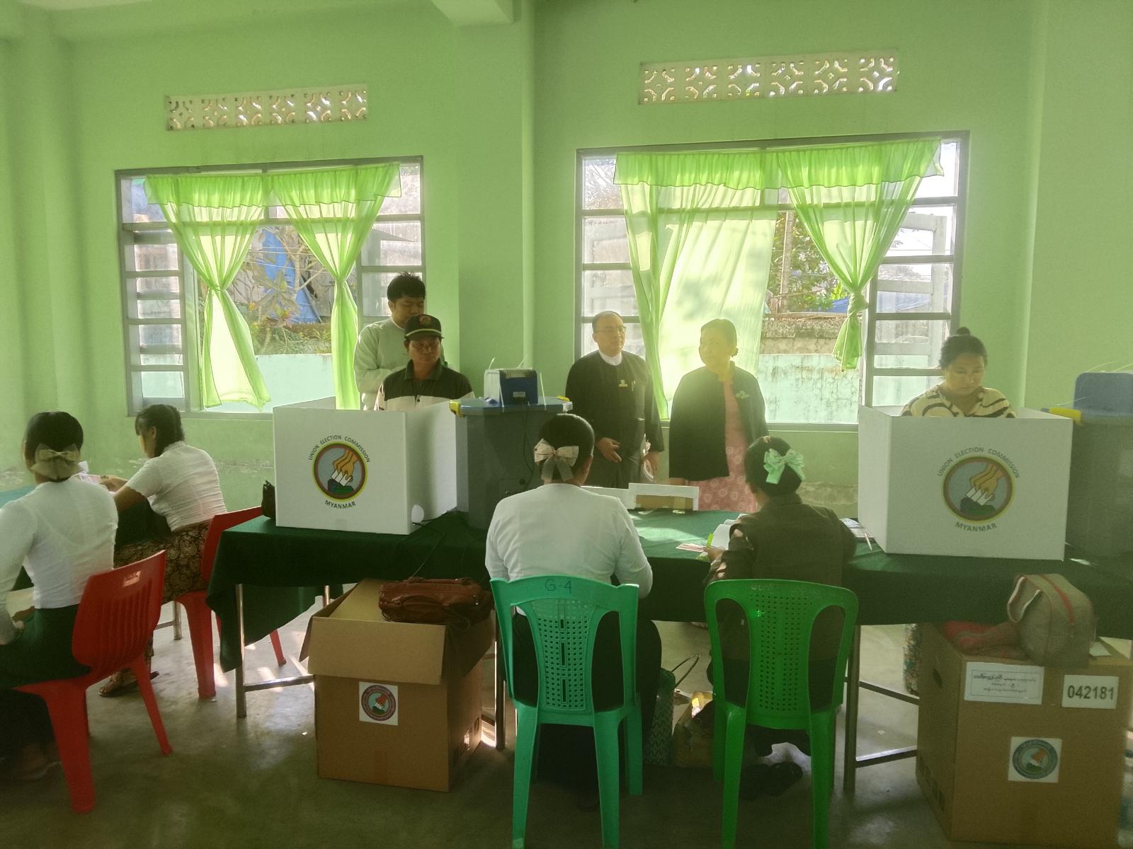 ရန်ကုန်တိုင်းဒေသကြီးအစိုးရအဖွဲ့ အဖွဲ့ဝင်ဥပဒေချုပ် ဒေါ်ဖြူမာဝေသည် ၂၀၂၅ ခုနှစ်၊ ပါတီစုံဒီမိုကရေစီအထွေထွေရွေးကောက်ပွဲ အောင်မြင်စွာ ကျင်းပနိုင်ရေးအတွက် အပိုင်း (၁) တွင် ပါဝင်သည့် မင်္ဂလာဒုံမြို့နယ်အတွင်းရှိ မဲရုံများ၌ မဲဆန္ဒရှင်ပြည်သူများ ဆန္ဒမဲပေးနေမှုအခြေအနေများကို ယနေ့ နံနက် ၉ နာရီက လှည့်လည်ကြည့်ရှုသည်။