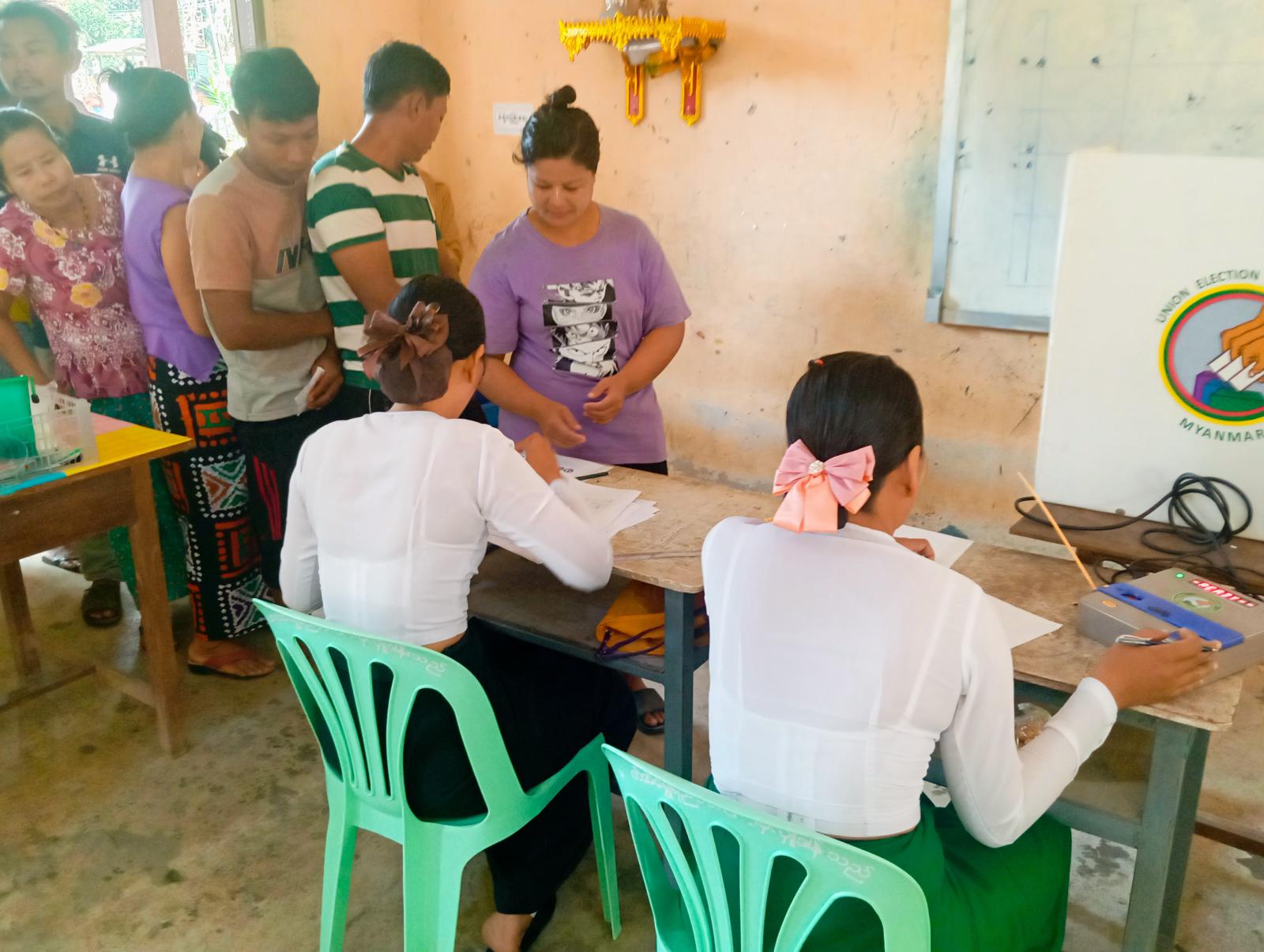 ၂၀၂၅ ခုနှစ်၊ ပါတီစုံဒီမိုကရေစီအထွေထွေရွေးကောက်ပွဲကို မဲပေးခြင်းမဆောင်ရွက်မီ မဲရုံတာဝန်ရှိသူများက ပါတီကိုယ်စားလှယ်များအား မဲပုံများပြသ၍ နံနက်(၆)နာရီတိတိတွင် မဲရုံးမှူးက မဲရုံဖွင့်လှစ်ကြောင်းကြေညာသည်နှင့်တစ်ပြိုင်နက် မဲဆန္ဒရှင်ပြည်သူများက မဲနံပါတ်၊ နိုင်ငံသားစိစစ်ရေးကတ်ပြားများပြသ၍ လွှတ်တော်အသီးသီးအတွက် မိမိကြိုက်နှစ်သက်ရာပါတီနှင့် လွှတ်တော်ကိုယ်စားလှယ်လောင်းများအား ဆန္ဒပြုမဲပေးကြသည်။