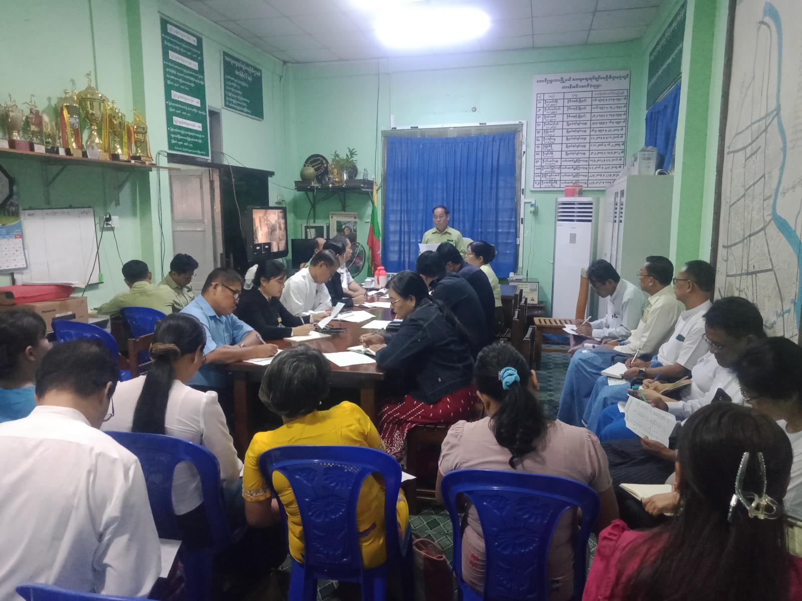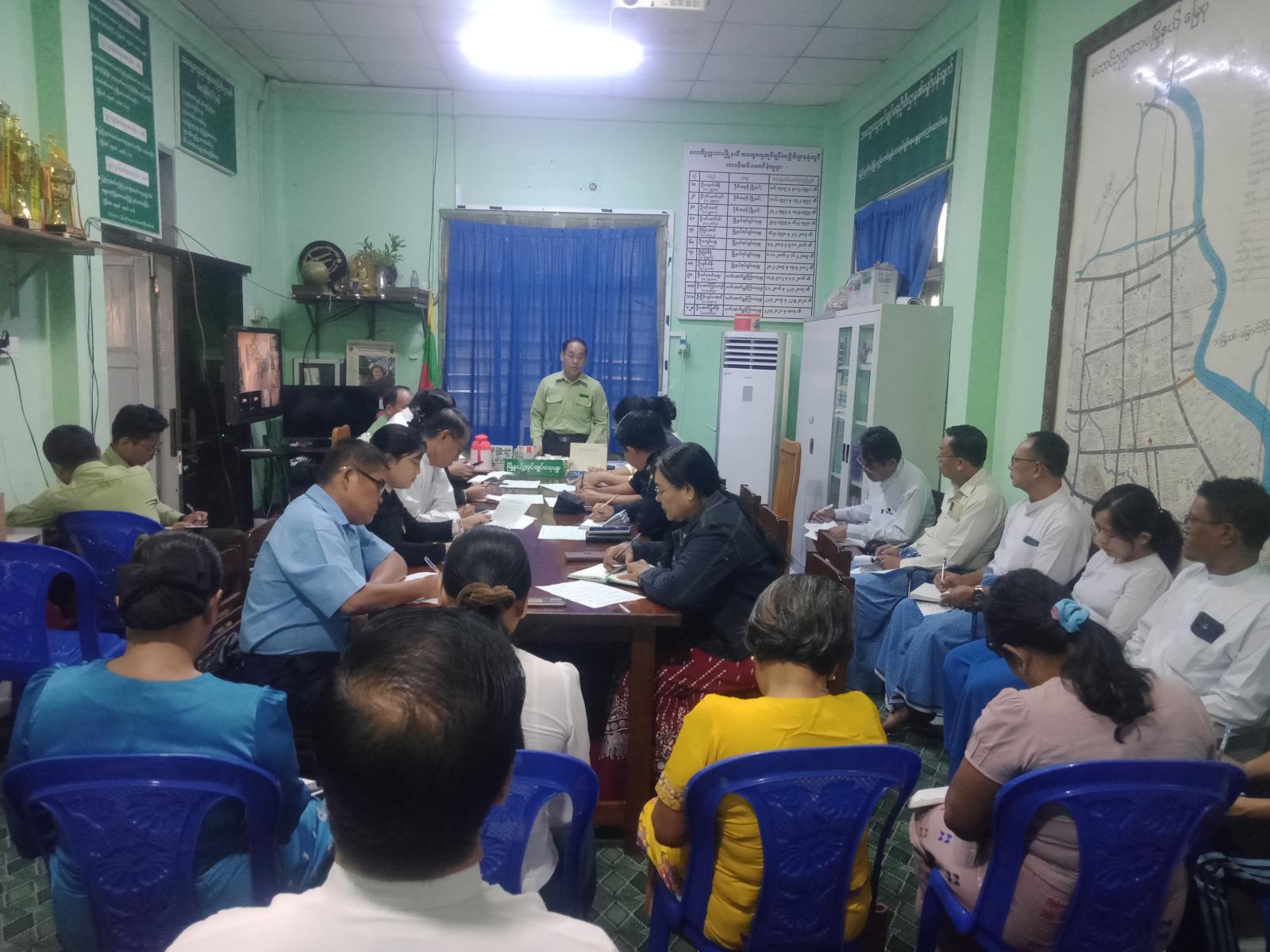 ဦးစွာ မြို့နယ်ပါတီစုံဒီမိုကရေစီ အထွေထွေရွေးကောက်ပွဲကာလ လုံခြုံရေးဆိုင်ရာ ကြီးကြပ်မှုကော်မတီဥက္ကဋ္ဌ၊ မြို့နယ်အုပ်ချုပ်ရေးမှူး ဦးအောင်မြတ်မိုးက အဖွင့်အမှာစကားပြောကြားရာ ရွေးကောက်ပွဲ အပိုင်း(၂)ကို ကျင်းပပြုလုပ်ရာတွင် မဲရုံ၀န်ထမ်းများ၏ လုံခြုံရေးဆိုင်ရာကိစ္စရပ်များ၊ မဲရုံများတွင် မီးဘေးအန္တရာယ်ကာကွယ်ရေးအစီအမံများ၊ ရွေးကောက်ပွဲအောင်မြင်စွာကျင်းပနိုင်ရေး ပူးပေါင်းဆောင်ရွက်ရန်တို့ကို ဆွေးနွေးခဲ့ပါသည်။ ဆက်လက်၍ မြို့နယ်ရွေးကောက်ပွဲကော်မရှင် အဖွဲ့ခွဲဥက္ကဋ္ဌ ဦးမောင်မောင်စိုးက ရပ်ကွက်များအလိုက် မဲရုံများထားရှိဆောင်ရွက်မှုအခြေအနေများနှင့် မဲရုံမှူး၊ ဒု-မဲရုံမှူးနှင့် အဖွဲ့၀င်များ၏ လုပ်ငန်းဆောင်တာများတွင် အဆင်ပြေချောမွေ့စေရေးအတွက် လိုအပ်သည်များကို ဆွေးနွေးပြောကြားခဲ့ပါသည်။ ဆက်လက်၍ မြို့နယ်ရွေးကောက်ပွဲအရာရှိ ဒေါ်ချမ်းမြအေးက MEVM မဲပေးစက်များကို လက်ခံရရှိနိုင်ရေးနှင့် စက်များတပ်ဆင်ဆောင်ရွက်သွားမည့် အစီအမံများနှင့်ပတ်သက်၍ ရှင်းလင်းဆွေးနွေးခဲ့ပါသည်။ ထို့နောက် မြို့နယ်စီမံခန့်ခွဲရေးနှင့် အုပ်ချုပ်ရေးကော်မတီအဖွဲ့၀င် ဗိုလ်မှူးဇော်နိုင်က လုံခြုံရေးနှင့်ပတ်သက်၍ ဆောင်ရွက်ရမည့်ကိစ္စရပ်များကို ဆွေးနွေးခဲ့ပါသည်။