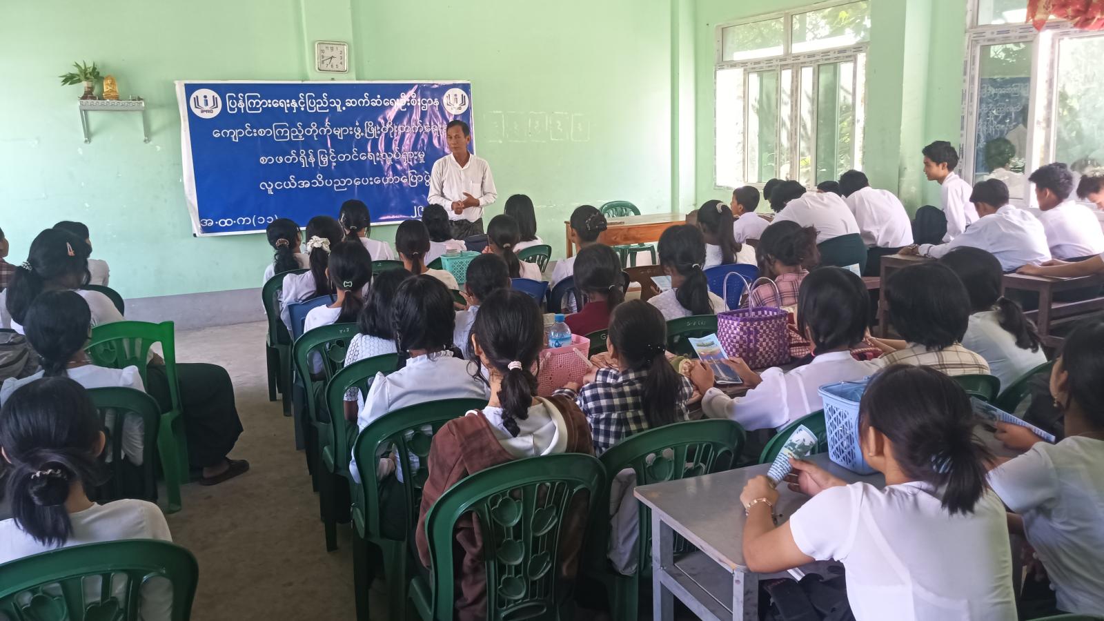 ဦးစွာ မြို့နယ်ပြန်/ဆက် ဦးစီးအရာရှိ ဦးမြင့်ဇော်က အထွေထွေဗဟုသုတသိကောင်းစရာများနှင့် အသိပညာပေးဟောပြောပွဲပြုလုပ်ရခြင်း အကြောင်းအရာများကို ရှင်းလင်းပြောကြားသည်။