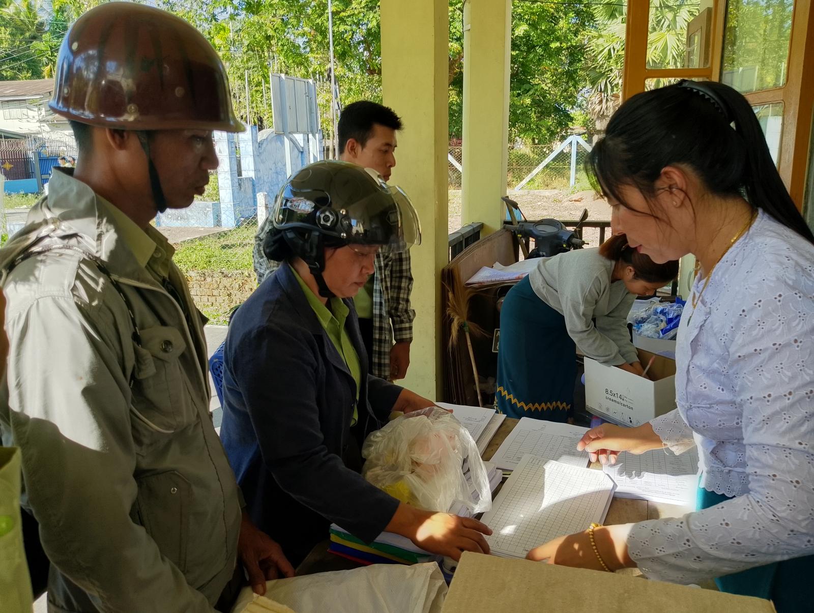 မဲရုံးသုံးပစ္စည်းများကို မြို့နယ်ရွေးကောက်ပွဲအရာရှိ ဒေါ်ခိုင်ဆွေသက်နှင့်ဝန်ထမ်းများက နယ်မြေ (၂)နှင့် နယ်မြေ (၅)တို့မှ သက်ဆိုင်ရာရပ်ကွက်နှင့် ကျေးရွာအုပ်စု ရွေးကောက်ပွဲကော်မရှင် အဖွဲ့ခွဲဥက္ကဋ္ဌနှင့် အတွင်းရေးမှူးတို့ထံ စနစ်တကျ ထုတ်ပေးလျက်ရှိကြောင်းနှင့် ကျန်ရှိသော နယ်မြေ (၁) (၃) (၄)တို့အား ဒီဇင်ဘာလ (၃၀)ရက်နေ့တွင် ဆက်လက်ထုတ်ပေးသွားမည်ဖြစ်ကြောင်း သိရသည်။