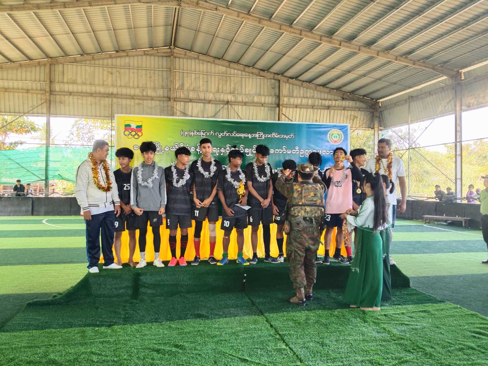 ရန်ကုန်တိုင်းဒေသကြီး၊ သန်လျင်ခရိုင်၊ ခရမ်းမြို့နယ်တွင် (၇၈) နှစ်မြောက်လွတ်လပ်ရေးနေ့ အထိမ်းအမှတ် ခရမ်းမြို့နယ်စီမံခန့်ခွဲရေးနှင့် အုပ်ချုပ်ရေးကော်မတီဥက္ကဋ္ဌဖလား အခြေခံပညာကျောင်းပေါင်းစုံ အမျိုးသားဖူဆယ်ဘောလုံးပြိုင်ပွဲဗိုလ်လုပွဲနှင့် ဆုချီးမြှင့်ပွဲအခမ်းအနားကို ယမန်နေ့ နံနက်ပိုင်းက အမှတ် (၃) ရပ်ကွက် ဖူဆယ်အားကစားကွင်း၌ ကျင်းပပြုလုပ်သည်။