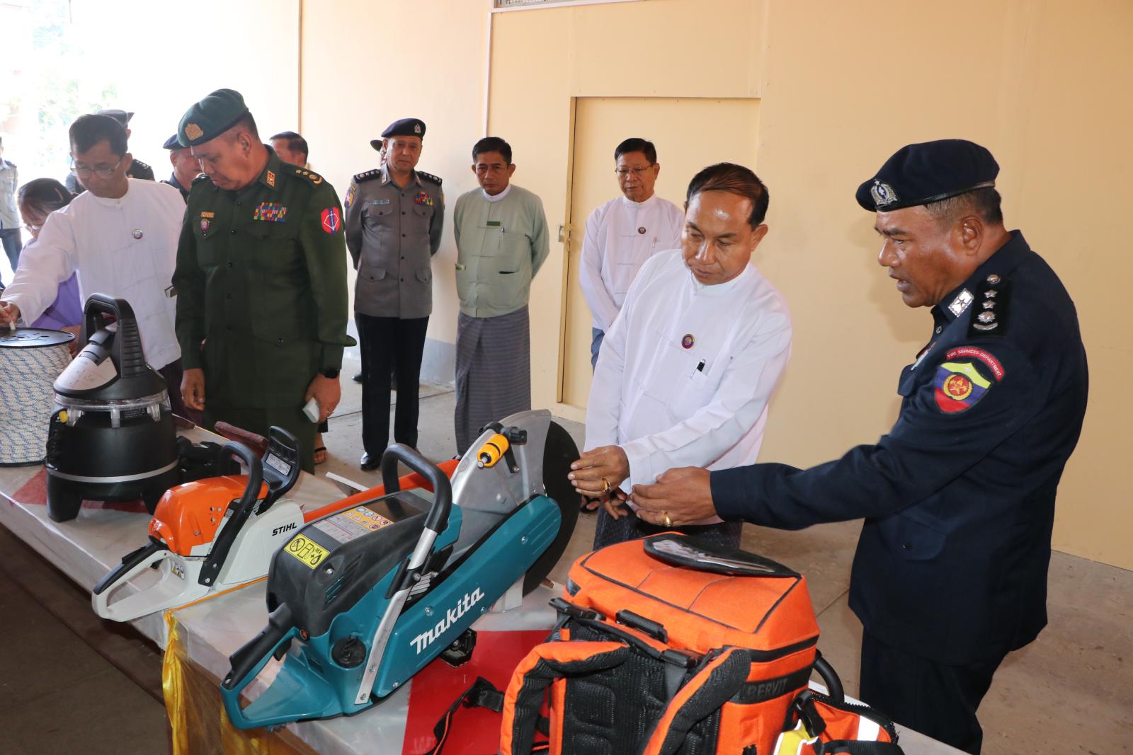 ယင်းနောက် တိုင်းဒေသကြီးဝန်ကြီးချုပ်နှင့် တာဝန်ရှိသူများသည် အဆိုပါမီးသတ် စခန်းအတွင်း ခင်းကျင်းပြသထားရှိသည့် ၂၀၂၅-၂၀၂၆ ဘဏ္ဍာရေးနှစ်၊ တိုင်းဒေသကြီးရန်ပုံငွေဖြင့် ဝယ်ယူဖြည့်တင်းထားရှိသည့် ခေတ်မီရှာဖွေကယ်ဆယ်ရေးပစ္စည်းများအား ကြည့်ရှုခဲ့ကြပြီး တိုင်းဒေသကြီးအတွင်းရှိ မြို့နယ်မီးသတ်စခန်းများသို့ ပြန်လည်ဖြန့်ဖြူးပေးမည့် မီးငြိမ်းသတ်ယာဉ်များနှင့် ရေသည်ယာဉ်များအား လိုက်လံကြည့်ရှုခဲ့ကြသည်။
