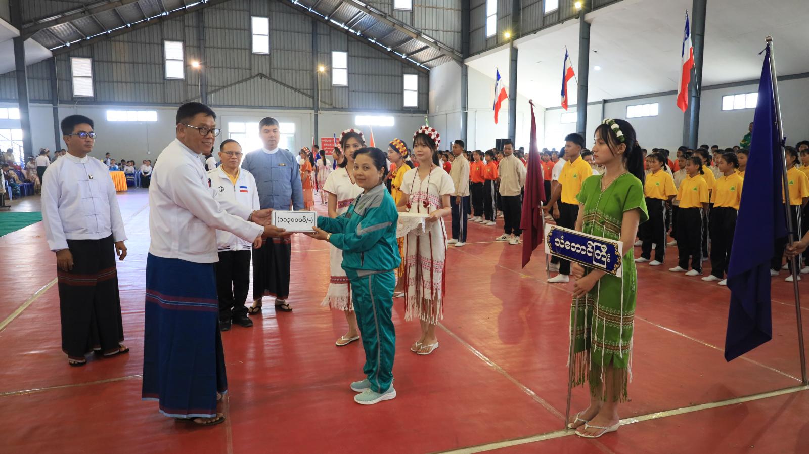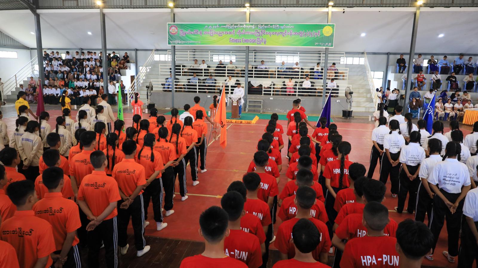 ၂၀၂၅ ခုနှစ်၊ ကရင်ပြည်နယ်အစိုးရအဖွဲ့၊ ပြည်နယ်ဝန်ကြီးချုပ်ဖလား မြို့နယ်ပေါင်းစုံ အခြေခံပညာအဆင့် ကိုယ်ကာယကြံ့ခိုင်ရေးလေ့ကျင့် ခန်းအတွဲ (၃) (၄) နှင့် Fitness Exercise ပြိုင်ပွဲ ဖွင့်ပွဲအခမ်းအနားကို ဒီဇင်ဘာ ၃၀ ရက်နေ့က ကရင်ပြည်နယ် ဘားအံမြို့နယ် လှာကမြင် မိုးလုံလေလုံအားကစားရုံ၌ ပြုလုပ်ကျင်းပခဲ့သည်။