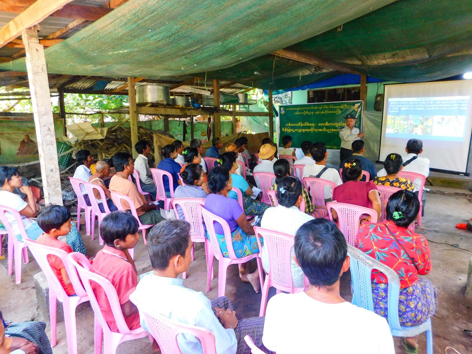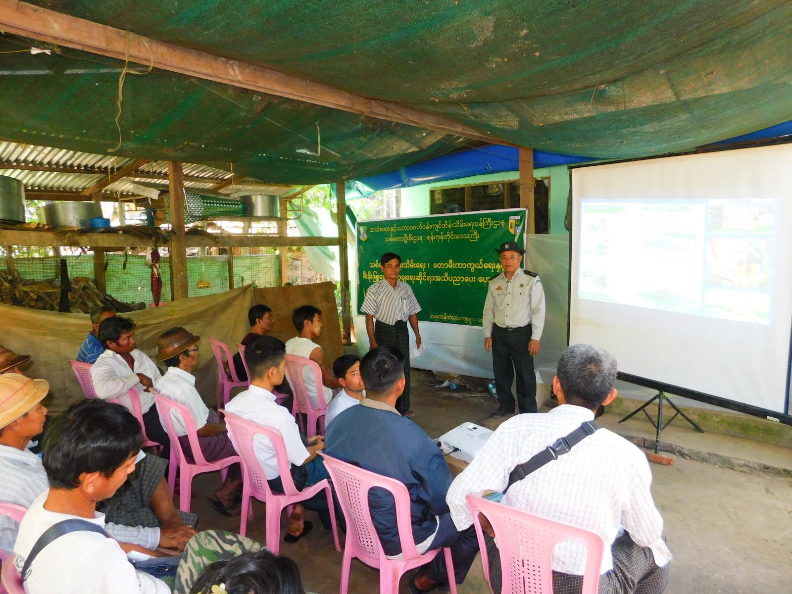 အဆိုပါဟောပြောပွဲတွင် မြို့နယ်သစ်တောဦးစီးဌာန မြို့နယ်ဦးစီးဌာနမှူး ဦးနိုင်လင်းထွန်းက သစ်တောသစ်ပင်များအကြောင်း၊ ဇီဝမျိုးစုံမျိုးကွဲများနှင့် ဂေဟစနစ်များအကြောင်း သစ်တောများ ကပေးစွမ်းနိုင်သည့် ဂေဟစနစ်ဆိုင်ရာအကျိုးကျေးဇူးများ၊ ရာသီဥတုပြောင်းလဲမှုလျှော့ချရေးတွင် သစ်တောများ၏ အရေးပါမှု၊ အကျိုးကျေးဇူးများနှင့် မီးခိုးမြူငွေ့လျော့ချရေးအတွက် Fire Hotspotsများ လျော့နည်းကျဆင်းအောင် တောမီးရှို့ခြင်း၊ လယ်ယာများ မီးရှို့ခြင်းများ မပြုလုပ်ရန်၊ မီးခိုးမြူငွေ့ညစ်ညမ်းမှုထိန်းချုပ်ရေး ဆောင်ရွက်နေမှုအခြေအနေများ၊ သစ်တောများ ထိန်းသိန်းရေးအကြောင်းနှင့် သစ်တောမှပေးစွမ်းနိုင်သော အကျိုးကျေးဇူးများအကြောင်းတို့ကို တက်ရောက်လာကြသည့် ကျေးရွာနေပြည်များကို အသိပညာပေးဟောပြောခဲ့သည်။