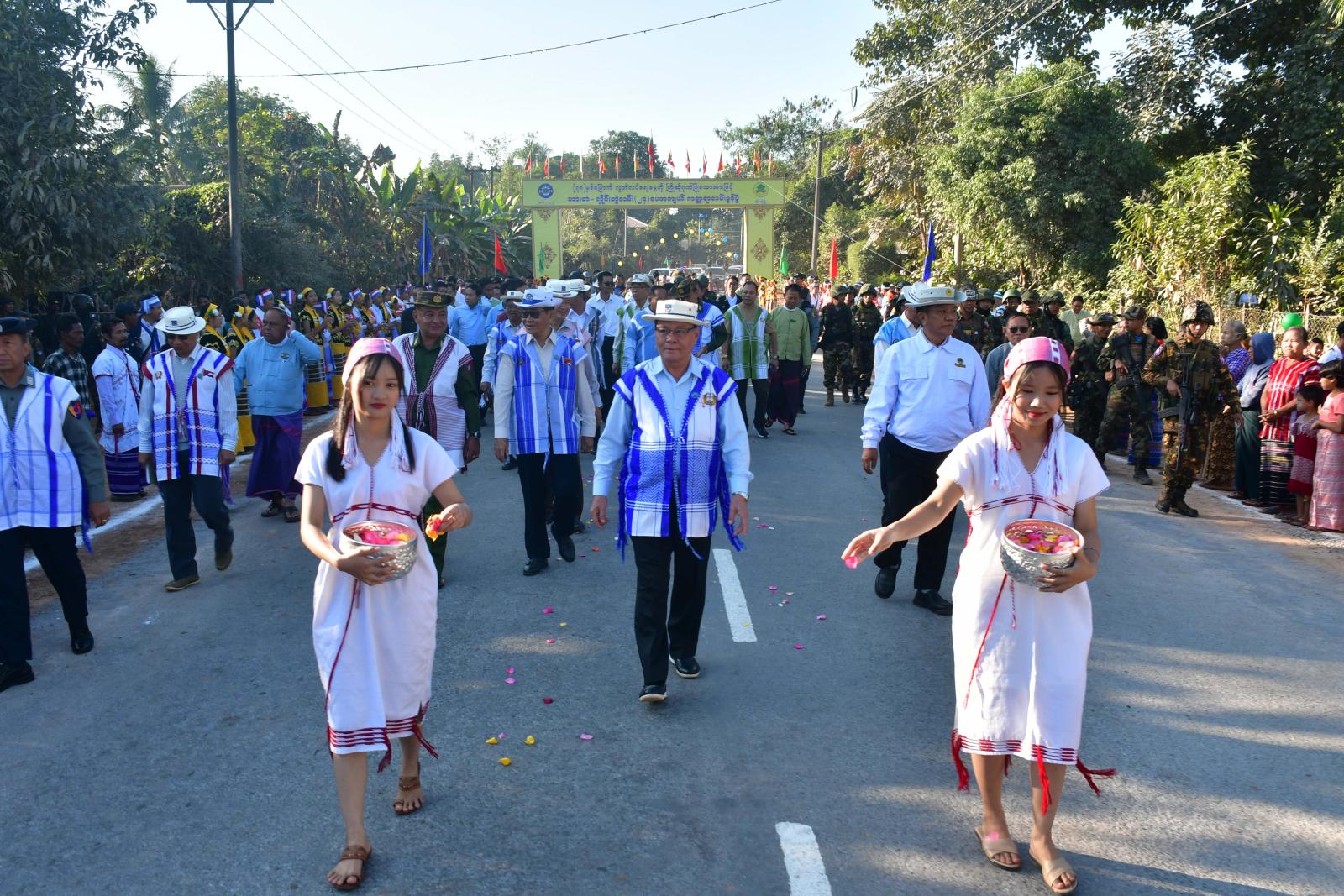 ထို့နောက် ပြည်နယ်ဝန်ကြီးချုပ်နှင့်တာဝန်ရှိသူများသည် လမ်းဖွင့်ပွဲတွင်ပါဝင်အားဖြည့် ကူညီပေးကြသော ယဉ်ကျေးမှုအဖွဲ့များ၊ ဘင်ခရာ၊ ပန်းပွားအဖွဲ့များနှင့် စုပေါင်းမှတ်တမ်းဓာတ်ပုံများရိုက်ကူး၍ ဂုဏ်ပြုဆုများပေးအပ်ချီးမြှင့်ကြကာ လမ်းအားဖြတ်သန်းကြည့်ရှုစစ်ဆေးခဲ့ကြသည်။