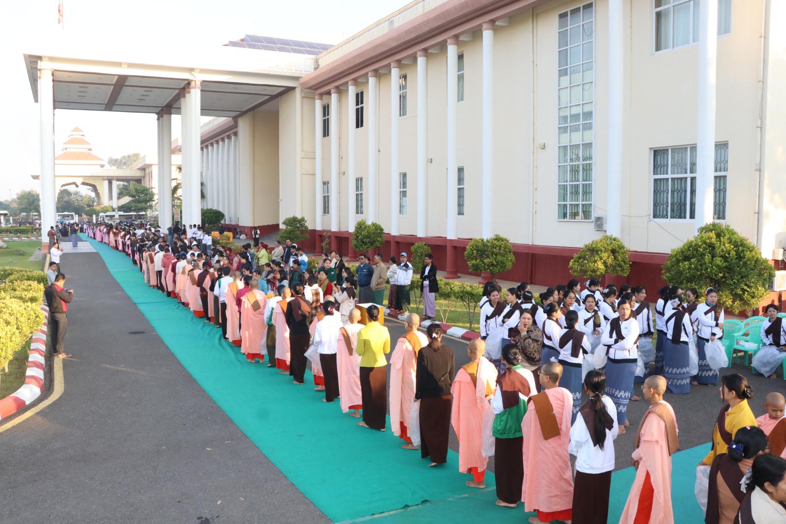 ယင်းနောက် တိုင်းဒေသကြီးဝန်ကြီးချုပ်နှင့်ဇနီး၊ တာဝန်ရှိသူများ၊ အလှူရှင်များက ပင့်သံဃာ ဆရာတော်၊ သံဃာတော်များအား ဆွမ်း၊ဆွမ်းဟင်း၊ သစ်သီး၊ အချိုပွဲများနှင့်ဝတ္ထုငွေများအား လောင်းလှူခဲ့ကြပြီး သီလရှင်ဆရာကြီး၊ ဆရာလေးများအား ဆွမ်းဆန်စိမ်း၊စား သုံးဆီနှင့် လှူဖွယ်ဝတ္ထုများအား ဆက်ကပ်လောင်းလှူကြသည်။