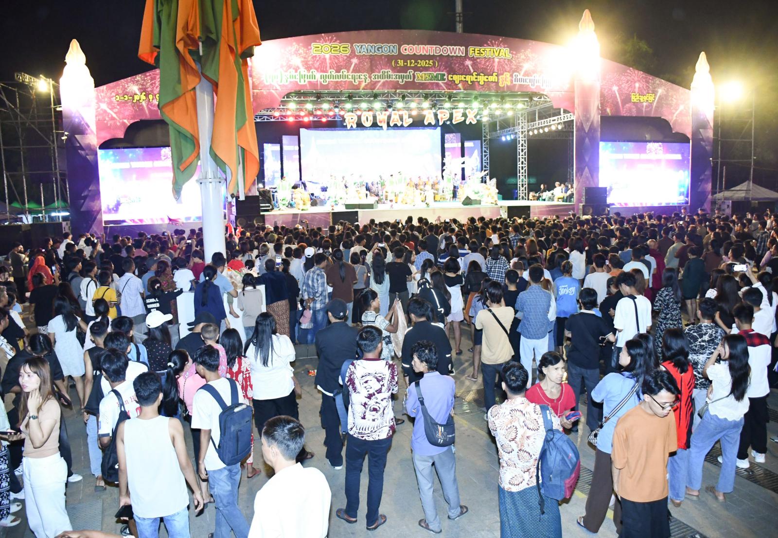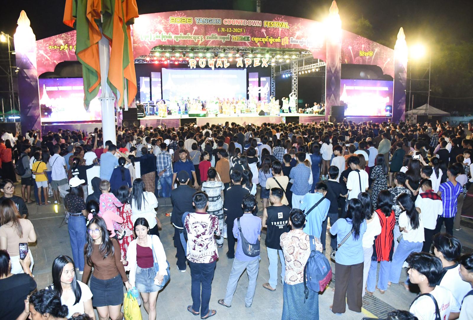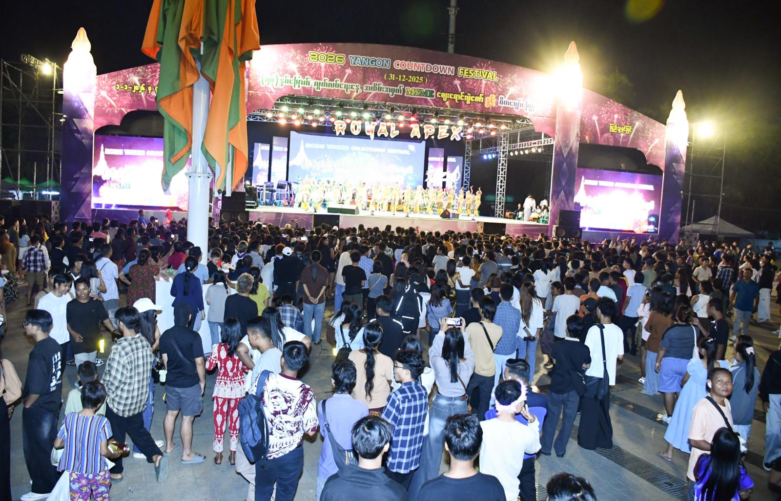 ရန်ကုန်တိုင်းသေကြီးအတွင်းရှိ ဒေသခံပြည်သူများအပန်းဖြေပျော်ရွှင်စေရန်၊ နှစ်သစ်ကို သာယာချမ်းမြေ့စွာ ကြိုဆိုနိုင်ရန်နှင့် စိတ်ခွန်အားသစ်များရရှိရန် ရည်ရွယ်၍ ကျင်းပသည့် ၂၀၂၆ ခုနှစ် နှစ်သစ်ကူးအကြို တေးဂီတဖျော်ဖြေပွဲကို ၂၀၂၅ ခုနှစ် ဒီဇင်ဘာ ၃၁ ရက်က ရန်ကုန်တိုင်းသေကြီး၊ ပြည်သူ့ရင်ပြင်၌ ကျင်းပရာ ပါဝင်ဆင်နွှဲကြသူများဖြင့် အထူးစည်ကားလျက်ရှိသည်။