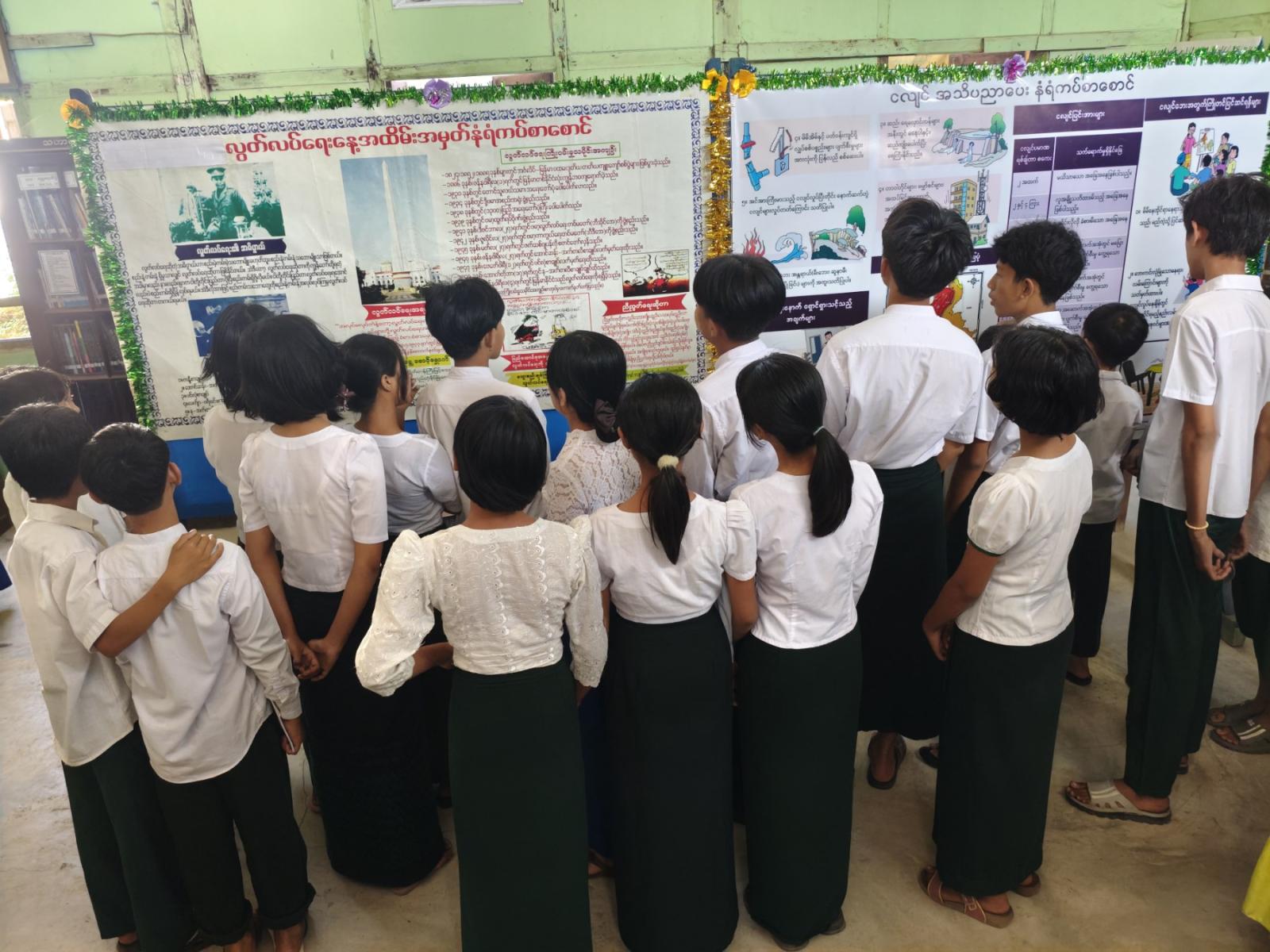 ဦးစွာ မြို့နယ်ပြန်ကြားရေးနှင့်ပြည်သူ့ဆက်ဆံရေးဦးစီးဌာနမှ မြို့နယ်ဦးစီးမှူး ဒေါ်ခင်သူဇာဝင်းက လွတ်လပ်ရေးနေ့ဖြစ်ပေါ်လာပုံနှင့် လွတ်လပ်ရေးနှင့်စပ်လျဉ်းသည့် သိမှတ်ဖွယ်ရာများ စသည်တို့ကို အသိပညာပေးဟောပြော၍ တက်ရောက်လာကြသော ကျောင်းသား၊ ကျောင်းသူလေးများက ပြသထားသော လွတ်လပ်ရေးနေ့အထိမ်းအမှတ် အသိပညာပေး နံရံကပ်စာစောင်များ၊ စာအုပ်စာစောင်များကို စိတ်ပါဝင်စားစွာကြည့်ရှုလေ့လာခဲ့ကြကြောင်း သိရသည်။