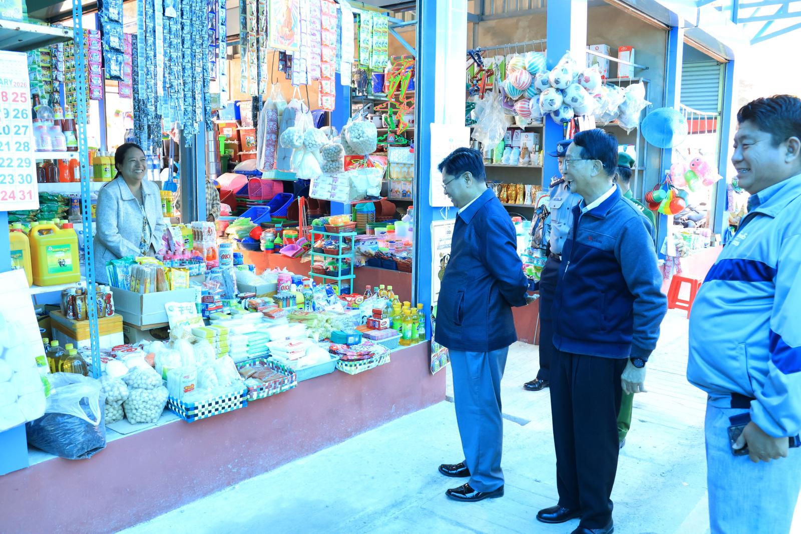 ထို့နောက် ဈေးအတွင်း ဈေးဆိုင်ခန်းများ ဖွင့်လှစ်ရောင်းချနေမှုကို လှည့်လည်ကြည့်ရှုအားပေးပြီး ဈေးသူဈေးသားများအား ရင်းရင်းနှီးနှီး နှုတ်ဆက်စကား ပြောကြားခဲ့သည်။