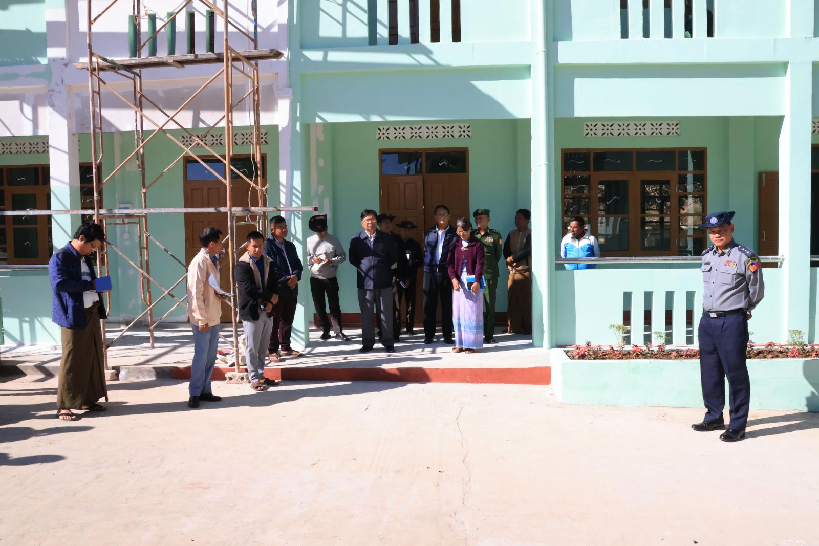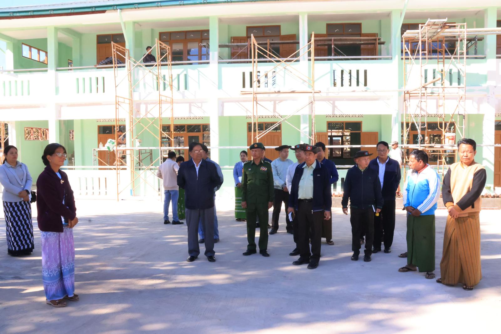 ဆက်လက်၍ ပြည်နယ်ဝန်ကြီးချုပ်နှင့် တာဝန်ရှိသူများသည် အခြေခံပညာအထက်တန်း ကျောင်း (ခွဲ) လောဓမ္မသို့ ရောက်ရှိပြီး ပြည်ထောင်စု အထွေထွေပိုလျှံရန်ပုံငွေဖြင့် ပြုပြင်တည်ဆောက်လျက်ရှိသည့် ၁၄၀ x ၃၀ ပေ သံကူကွန်ကရစ် နှစ်ထပ်စာသင်ဆောင် အပြီးသတ်တည်ဆောက်နေမှုကို လှည့်လည်ကြည့်ရှုစစ်ဆေးရာ တာဝန်ရှိသူများက လုပ်ငန်းဆောင်ရွက်မှုအခြေအနေများကို ရှင်းလင်းတင်ပြကြသည်။