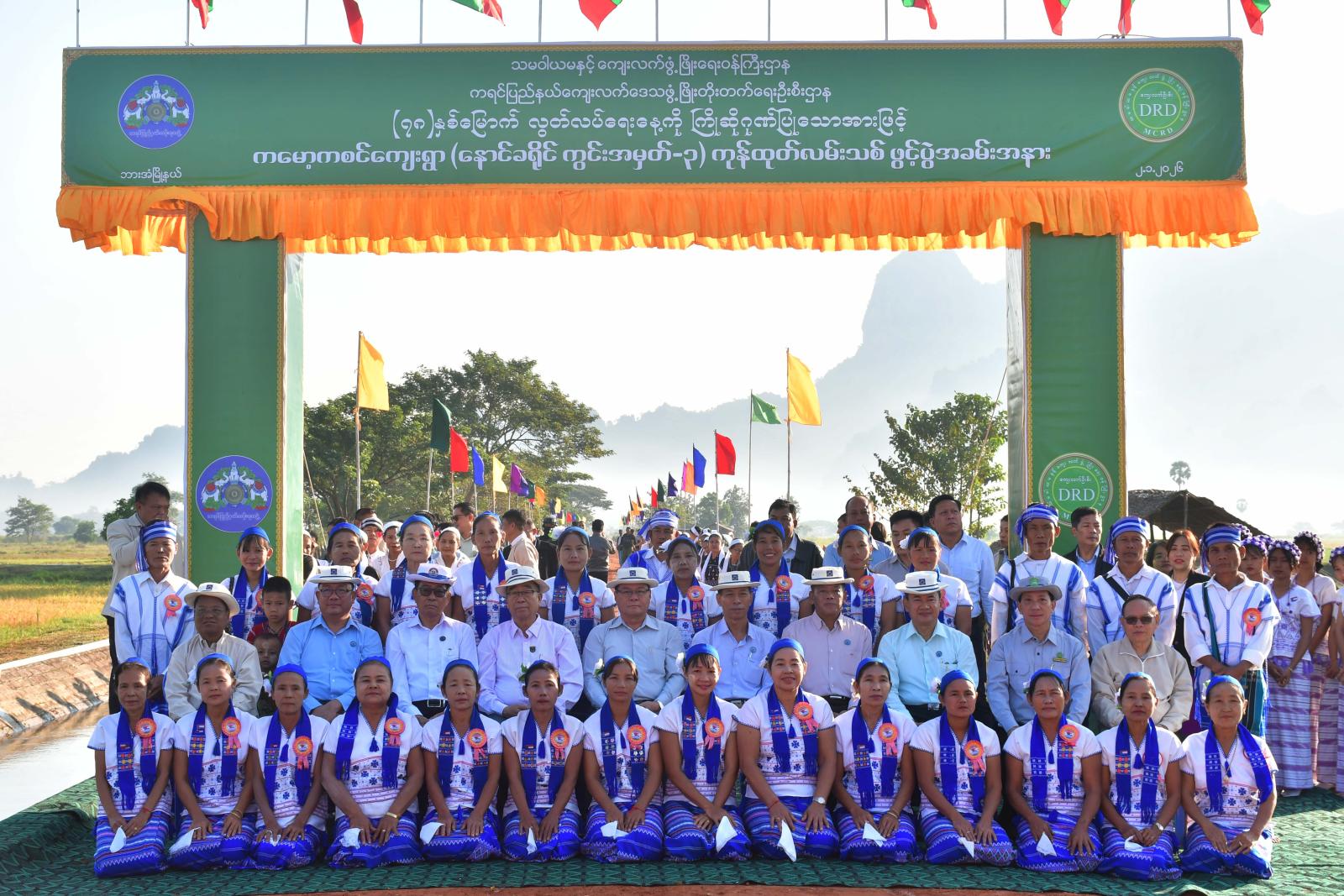 ဦးစွာ ကရင်ပြည်နယ်ဝန်ကြီးချုပ်ဦးစောမြင့်ဦး၊ ပြည်နယ်တရားလွှတ်တော်တရားသူကြီးချုပ် ဦးညွန့်လင်းနှင့် ပြည်နယ်အစိုးရအဖွဲ့ဝင်များက အရှည် ၅ ဖာလုံခွဲ၊ အကျယ် ၁၂ ပေ၊ Box Culvert ၂ စင်းပါဝင်သော ကုန်ထုတ်လမ်းသစ်ကို ဖဲကြိုးဖြတ်ဖွင့်လှစ်ပေးကြပြီး ကုန်ထုတ်လမ်းဖွင့်ပွဲတွင် ပါဝင်အားဖြည့်ကူညီပေးကြသော ယဉ်ကျေးမှုအဖွဲ့များနှင့် စုပေါင်းမှတ်တမ်းဓာတ်ပုံများရိုက်ကူး၍ ဂုဏ်ပြုဆုများ ပေးအပ်ချီးမြှင့်ကြကာ ပြည်နယ်ဝန်ကြီးချုပ်နှင့်တာဝန်ရှိသူများက ကုန်ထုတ်လမ်းသစ်ကို ဖြတ်သန်းကြည့်ရှုစစ်ဆေးခဲ့ကြသည်။