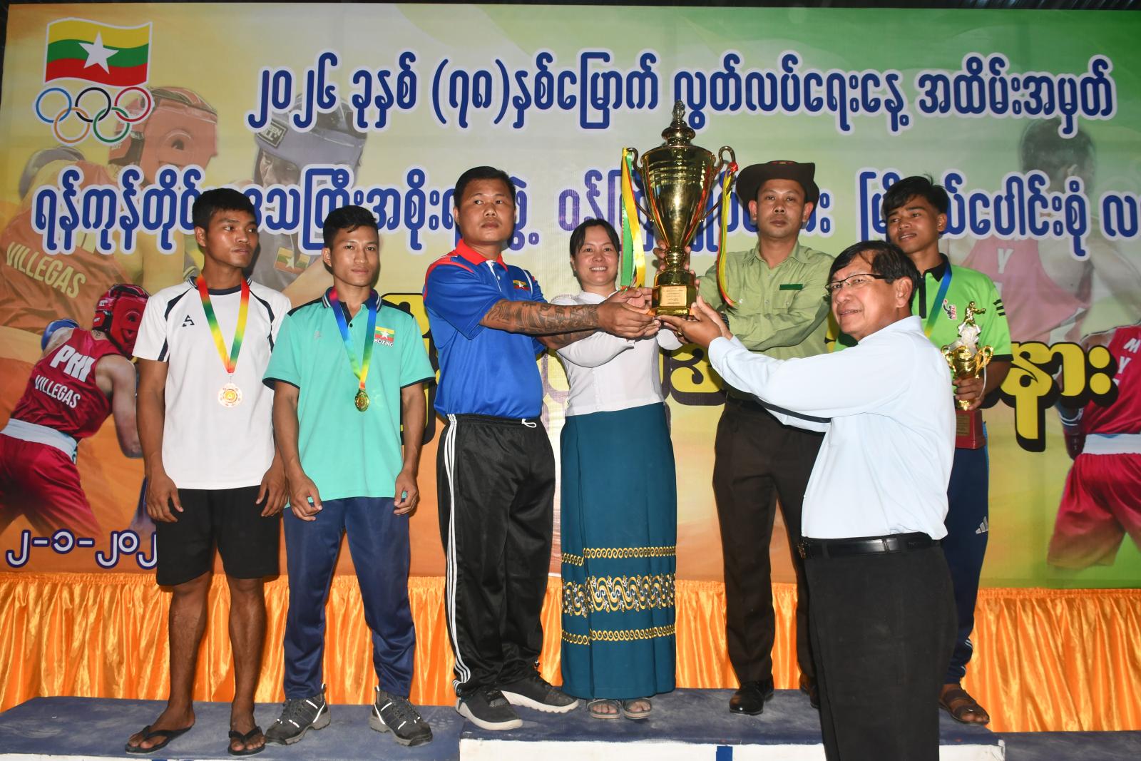 ထို့နောက် ဆုချီးမြှင့်ပွဲ အခမ်းအနားအား ကျင်းပရာ ပြိုင်ပွဲတွင် အမျိုးသမီး(၄၈) ကီလိုတန်းပြိုင်ပွဲ၊ အမျိုးသမီး (၅၄) ကီလိုတန်းပြိုင်ပွဲ၊ အမျိုးသားသက်ငယ်(၄၄) ကီလိုတန်းပြိုင်ပွဲ၊ အမျိုးသား သက်ငယ် (၄၆) ကီလိုတန်းပြိုင်ပွဲ၊ အမျိုးသားသက်ငယ် (၄၈) ကီလိုတန်းပြိုင်ပွဲ၊ အမျိုးသား သက်ငယ် (၅၀) ကီလိုတန်းပြိုင်ပွဲ၊ အမျိုးသား (၅၆) ကီလိုတန်းပြိုင်ပွဲနှင့် အမျိုးသမီးအထူးပြိုင်ပွဲတို့တွင် မြို့နယ်များမှ ပထမ၊ ဒုတိယ၊ တတိယနှင့် ဂုဏ်ပြုဆုရရှိခဲ့ကြသည့် အားကစားသမားများကို ရန်ကုန်တိုင်းဒေသကြီးအစိုးရအဖွဲ့ဝင်များနှင့် တာဝန်ရှိသူများက တစ်ဦးချင်း ဆုတံဆိပ်များနှင့် ဂုဏ်ပြုချီးမြှင့်ငွေများကို အသီးသီး ချီးမြှင့်ခဲ့ကြသည်။