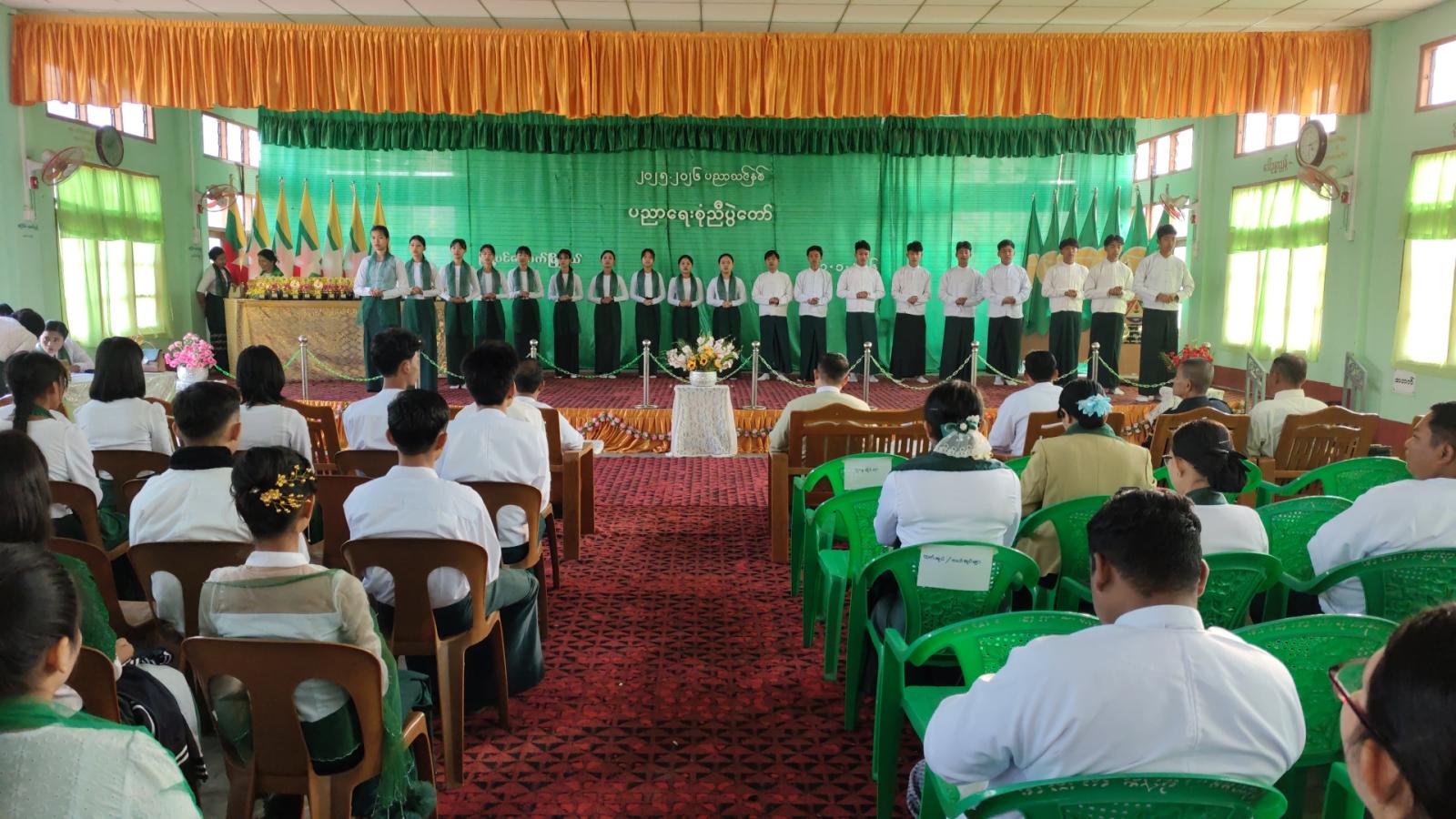 ဆက်လက်ပြီး မြို့နယ်အတွင်းအခြေခံပညာကျောင်းများမှ ပညာရည်ချွန်ဆုရ ကျောင်းသား ကျောင်းသူများနှင့် ကာယ၊ ဉာဏကဏ္ဍအသီးသီး၌ ထူးချွန်ဆုရရှိခဲ့ကြသည့် ကျောင်းသား/ကျောင်းသူများ ၊ တက္ကသိုလ်ဝင်တန်း အောင်ချက်အကာင်းဆုံး အခြေခံပညာကျောင်းအုပ်ဆရာကြီး ဆရာမကြီးများအား မြို့နယ်စီမံခန့်ခွဲရေးနှင့်အုပ်ချုပ်ရေးကော်မတီဥက္ကဋ္ဌနှင့် ဌာနဆိုင်ရာအကြီးအကဲများက ဂုဏ်ပြုမှတ်တမ်းလွှာများနှင့် ဆုငွေများပေးအပ်ချီးမြှင့်ခဲ့ကြသည်။