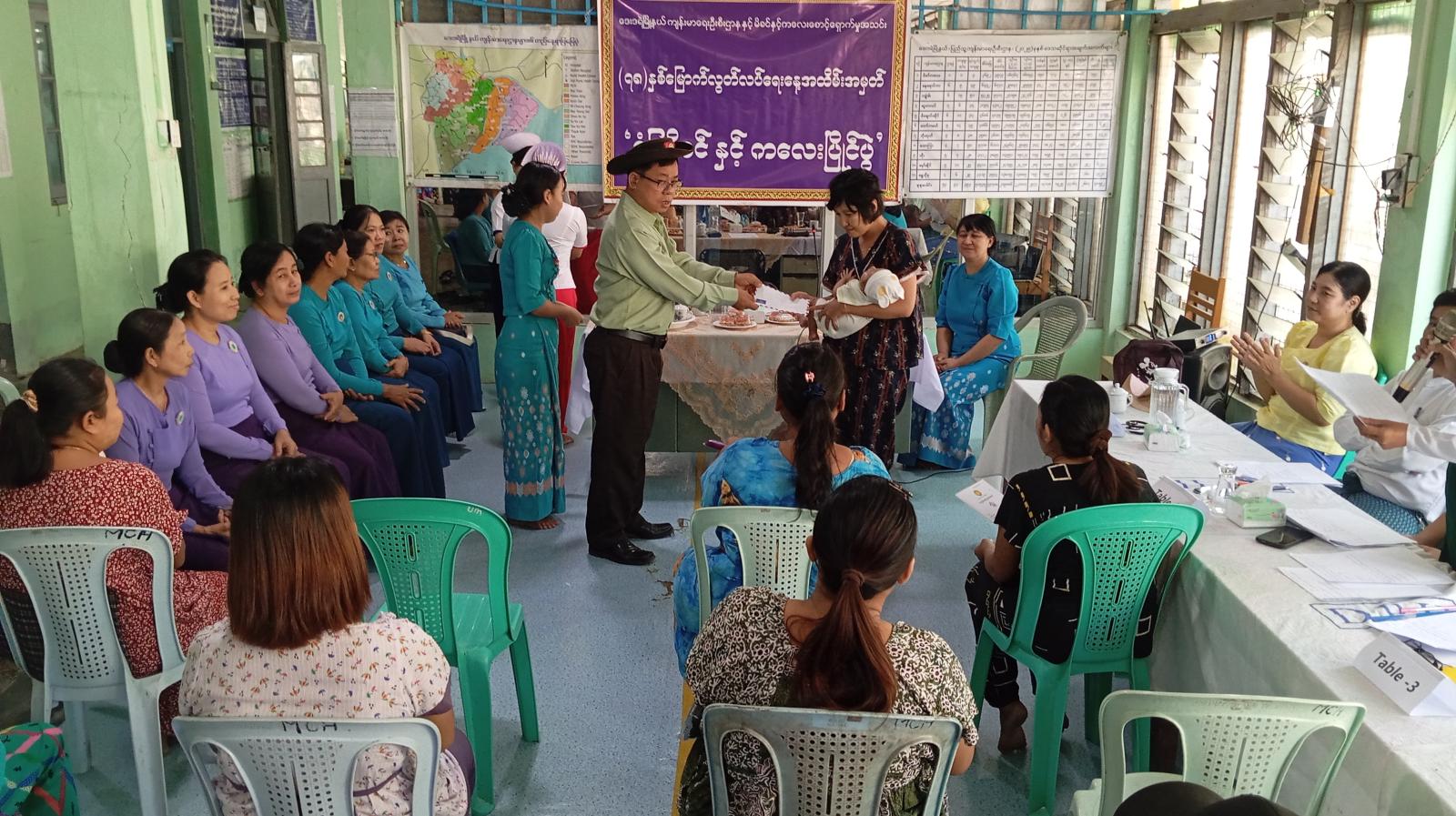 ပြိုင်ပွဲအပြီးတွင် မြို့နယ်စီမံခန်ခွဲရေးနှင့်အုပ်ချုပ်ရေးကော်မတီဥက္ကဋ္ဌ ဦးမြသိန်းမောင်က အသက် ၆ လမှ ၂ နှစ်အထိ ကလေးပြိုင်ပွဲတွင် ဆုရရှိသူများအားလည်းကောင်း၊ မြို့နယ်ပြည်သူ့ကျန်းမာရေးဦးစီးဌာနမှူး ဒေါက်တာ ဒေါက်တာချိုချိုဝင်းက စံပြမိခင်ဆု ရရှိသူများကိုလည်းကောင်း ဆုများအသီးသီး ချီးမြှင့်ခဲ့ကြပြီး မြို့နယ်မိခင်နှင့်ကလေးစောင့်ရှောက်ရေးအသင်းနှင့် မြို့နယ်အမျိုးသမီးရေးရာအဖွဲ့ တာဝန်ရှိသူများက ဝင်ရောက်ယှဉ်ပြိုင်ခဲ့ကြသူများအား အမှတ်တရ လက်ဆောင်ပစ္စည်းများ အသီးသီးပေးအပ်ခဲ့ကြကြောင်း သိရသည်။